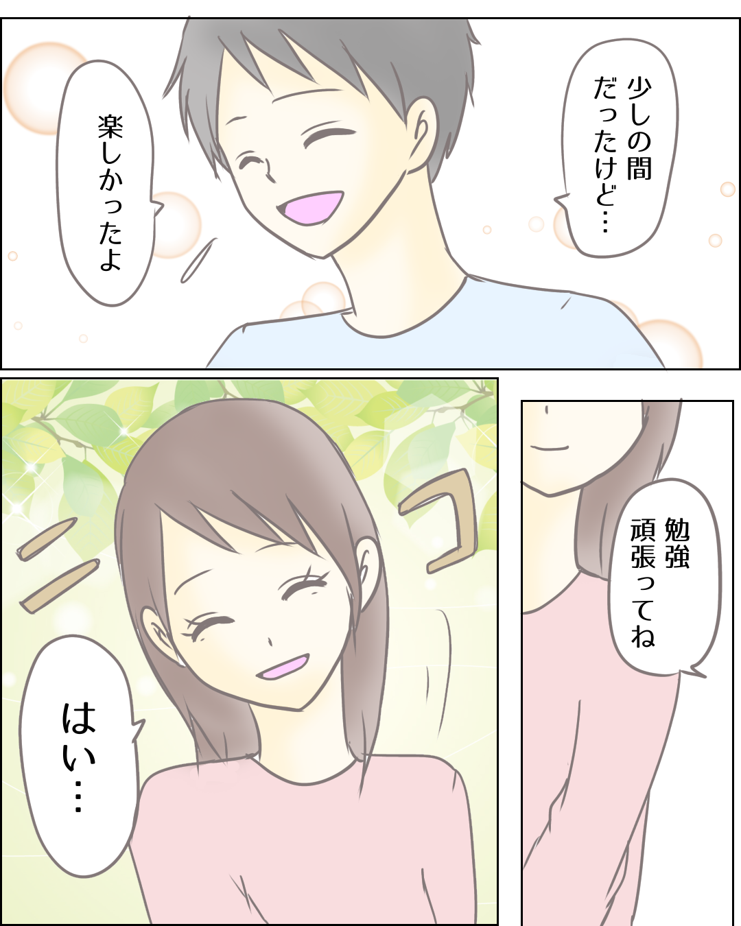 本気の恋は人を迷わせる【Lovely漫画】 オリジナル漫画 2022年3月29日 目次 こちらのLovely漫画もおすすめ 今でも少し後悔している。【Lovely漫画】 高校生の時に毎日一緒にいた彼。クラスが離れて彼への恋心に気づくも、伝えられなかった。それから数年が経ち…©sui/エピソード:れいちゃん 次の恋に進むには【Lovely漫画】 彼の優しさに徐々に惹かれ、二人で遊ぶように!思い切って告白をすると、彼は悲しい笑顔で…。©はる/エピソード:イチゴ 嘘しか言わない日々【Lovely漫画】 昔から虚言癖のあった私は、当時お付き合いしていた優しい彼氏に本当のことを言えずお別れすることに。自分のありのままの姿を見せられる自然体で素敵な女性になれるよう、このエピソードを投稿しました。©おはぎ/エピソード:totomomo 付き合い始めの頃みたいにまた彼から愛されたい!【Lovely漫画】[PR] ©サクライ ライター Lovely編集部 編集部レポや最新情報など皆さんの「知りたい」をお届け!よろしくお願いします♡ Related article / 関連記事 オリジナル漫画 メンヘラ彼氏にサヨナラ【Lovely漫画】 ©みんみ 2022年3月29日 オリジナル漫画 年下イケメン彼氏に翻弄されるオンナの毎日#3【Lovely漫画】 ©みんみ 2022年3月29日 オリジナル漫画 2人暮らしのゆる家事日記~気まぐれ旦那の献立作りの巻き~後編【Lovely漫画】 ©みんみ 2022年3月29日 オリジナル漫画 年下イケメン彼氏に翻弄されるオンナの毎日#1【Lovely漫画】 ©みんみ「初めての○○の話 前編」 2022年3月29日 オリジナル漫画 年下イケメン彼氏に翻弄されるオンナの毎日#2【Lovely漫画】 ©みんみ「初めての○○の話 後編」 2022年3月29日 1 2 3 オリジナル漫画 よかったらシェアしてね! URLをコピーしました! URLをコピーしました! 【夢占い】彼女に浮気された夢の意味13選|もしかして予知夢?心理状態も解説 | plush 恋愛相談はどこで?相談所・掲示板・アプリでする?男友達にする?