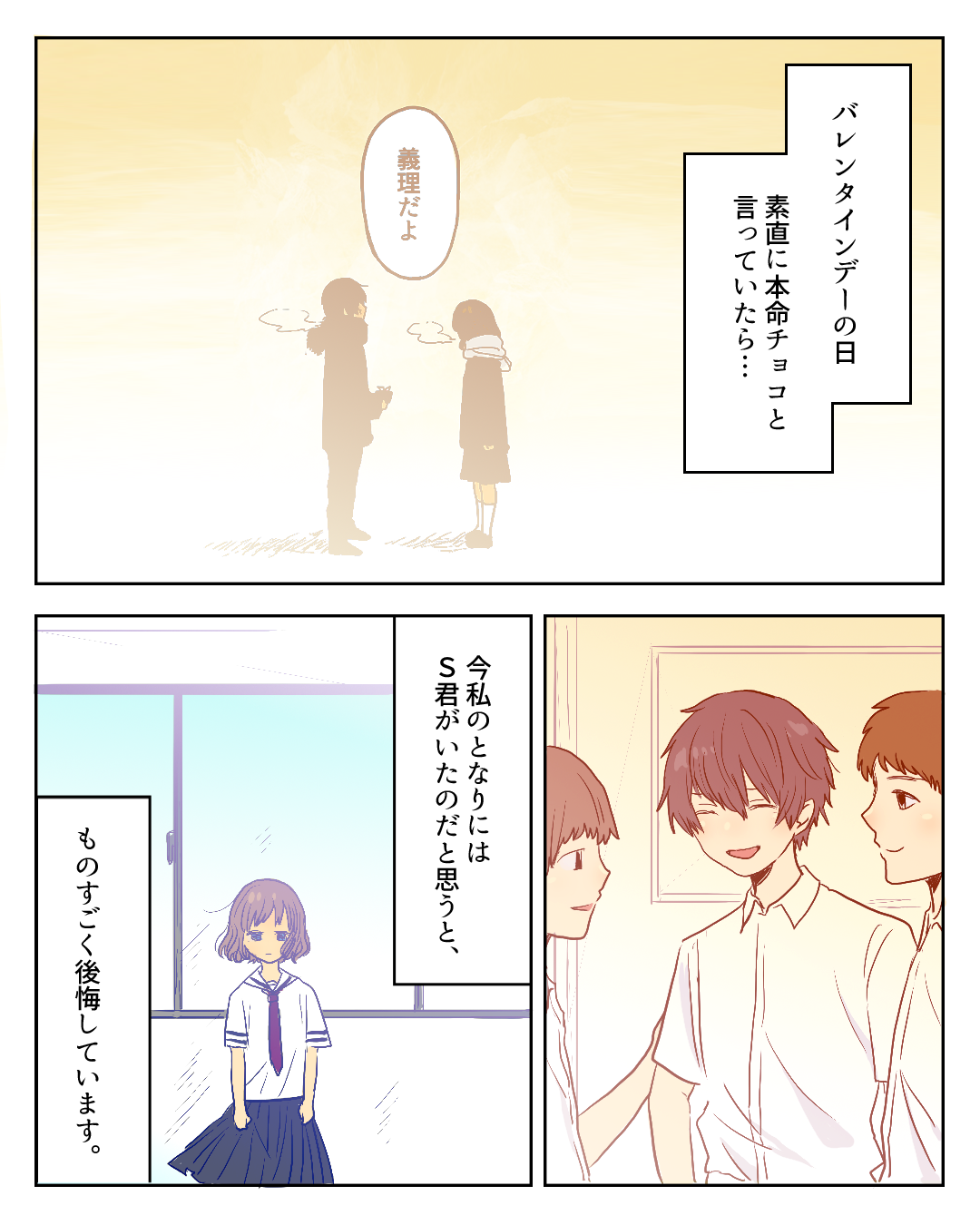 あの日、素直になれなかったから【Lovely漫画】 オリジナル漫画 2024年12月6日 こちらのLovely漫画もおすすめ もしかしたら好きだったのかな【Lovely漫画】 今も思い出す同級生の彼。あれは恋だったのかな…。©倖/エピソード:えだ豆 淡い青春の思い出【Lovely漫画】 ある日、友達からの一言で意識するようになったのは、片思い相手の友達で…。©はる/エピソード:あっちゃん 先輩に恋してた5年間【Lovely漫画】 新しく入ったバイト先の3つ年上の先輩に一目惚れした高校1年生の私。想いを伝えることが出来ないまま、先輩は就職活動に専念するためバイトを辞めることに。そんな中、再び先輩に会えるチャンスが訪れて…©みほ/エピソード:匿名 この恋は無駄なんかじゃない【Lovely漫画】 体育の授業で一目惚れした彼と連絡先を交換できた…!そして二人は付き合う事に♡でも、あるキッカケが心の距離を生み出してしまった…。©はる/エピソード:匿名 ライター Lovely編集部 編集部レポや最新情報など皆さんの「知りたい」をお届け!よろしくお願いします♡ 目次Related article / 関連記事 オリジナル漫画 メンヘラ彼氏にサヨナラ【Lovely漫画】 ©みんみ 2022年3月29日 オリジナル漫画 年下イケメン彼氏に翻弄されるオンナの毎日#3【Lovely漫画】 ©みんみ 2022年3月29日 オリジナル漫画 2人暮らしのゆる家事日記~気まぐれ旦那の献立作りの巻き~後編【Lovely漫画】 ©みんみ 2022年3月29日 オリジナル漫画 年下イケメン彼氏に翻弄されるオンナの毎日#1【Lovely漫画】 ©みんみ「初めての○○の話 前編」 2022年3月29日 オリジナル漫画 年下イケメン彼氏に翻弄されるオンナの毎日#2【Lovely漫画】 ©みんみ「初めての○○の話 後編」 2022年3月29日 オリジナル漫画 よかったらシェアしてね! URLをコピーしました! URLをコピーしました! 私への扱いだけ雑なママ友13【稲漫画】 神奈川のデートスポット31選!おすすめから穴場まで完全網羅!