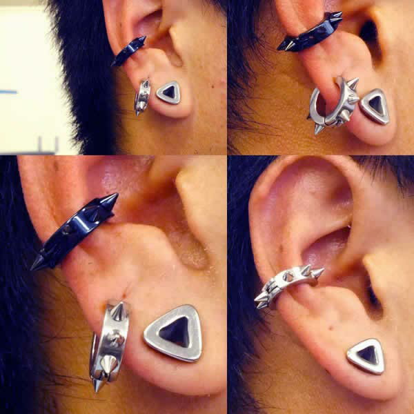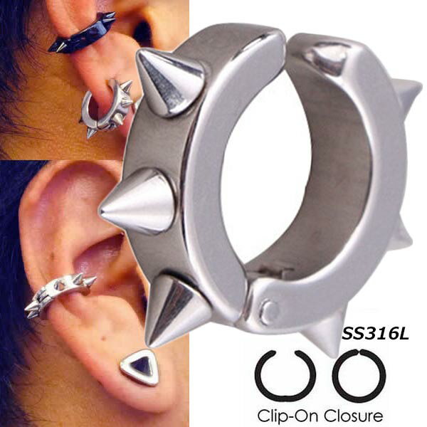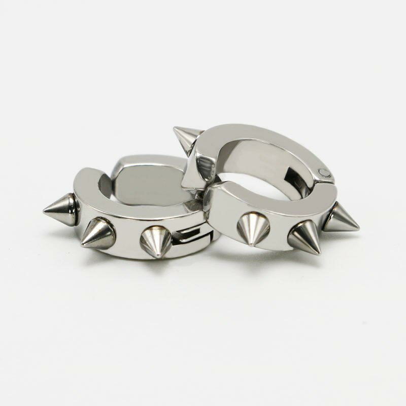 シンプルなフープタイプのイヤリングに大きめのトゲが並ぶデザインはカジュアル、ロック系のデザインが好きな男性にも人気。シンプルなイヤリング、イヤーカフとの重ね着けができるのもポイントですね。