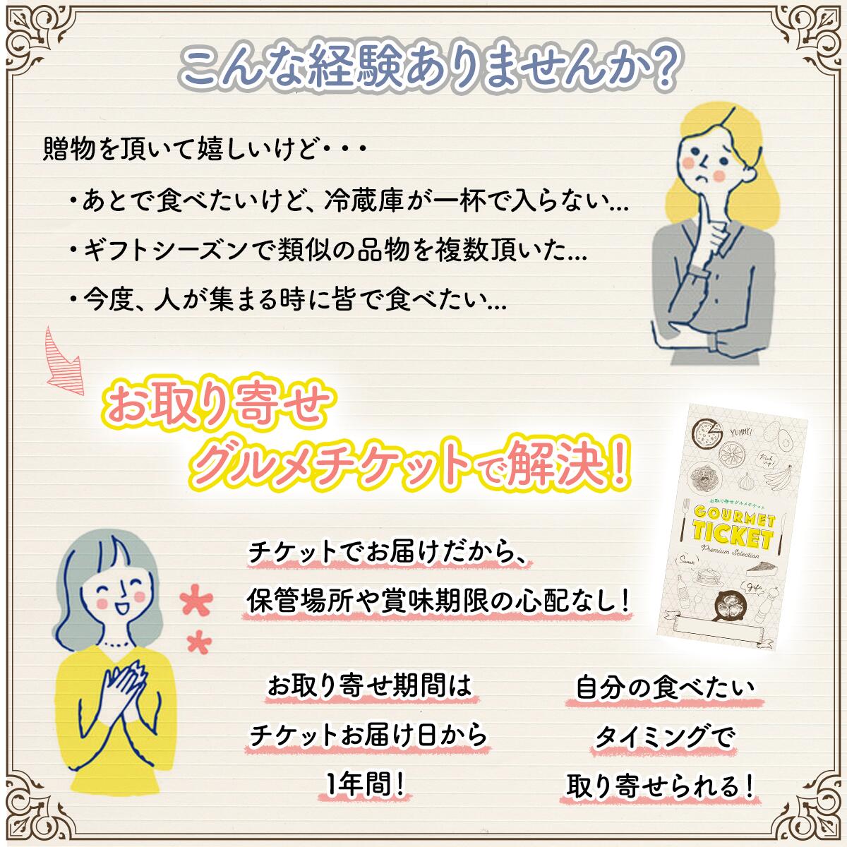 食べたいタイミングや都合の良いタイミングで、カードを贈られた本人が注文できるのが便利なところ。お取り寄せの有効期限はカードお届けから1年間。冷凍庫など保管場所に余裕のない方でも安心です。