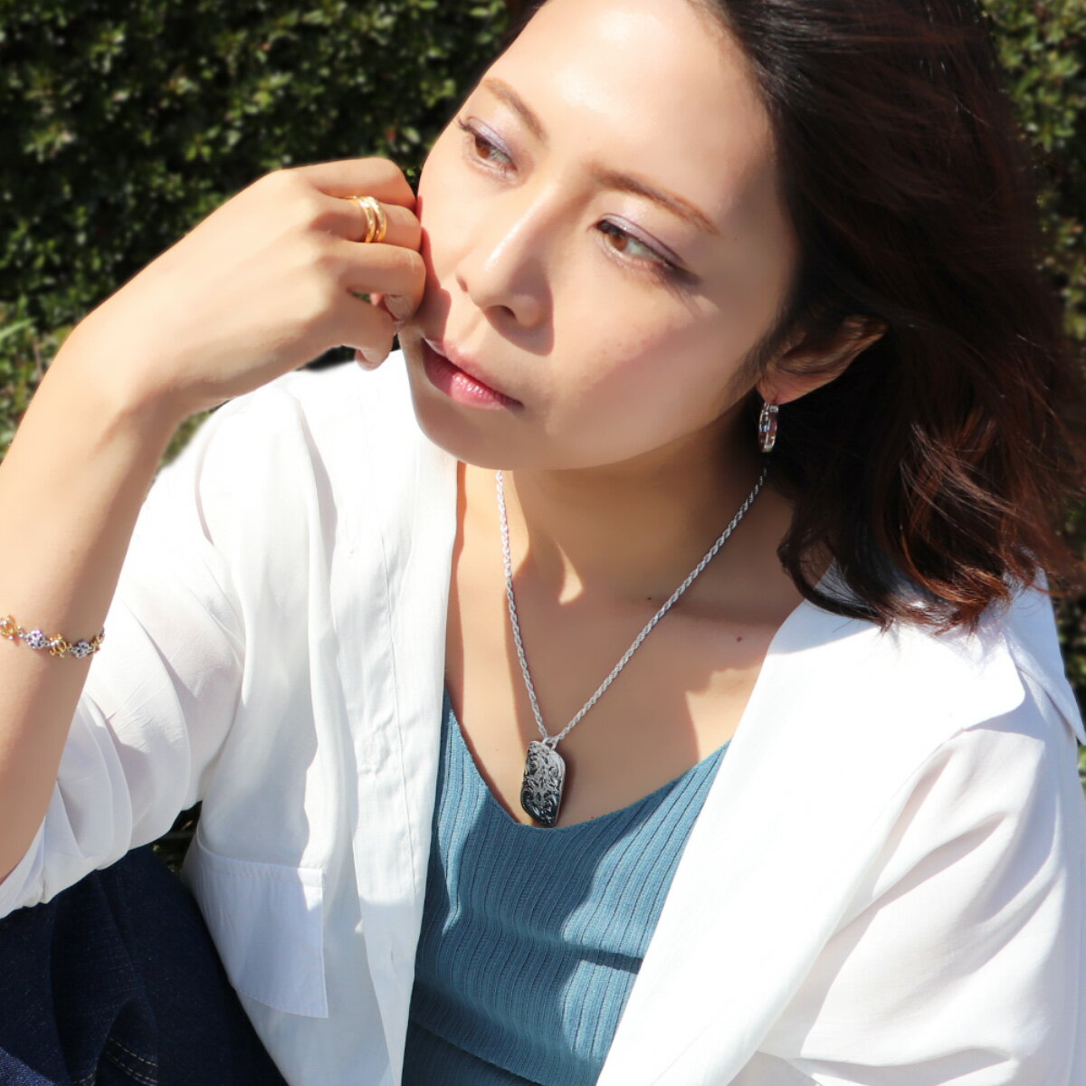 フープピアスはラウンド型が定番ですが、こちらはあまり見ないスクエア型。大人っぽさと気品が感じられるデザインです。