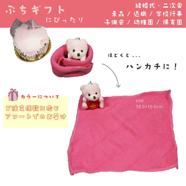 ストラップ付きぬいぐるみはランドセルやお稽古バックに付けるのも簡単。ケーキの土台は吸収性の良いマイクロファイバー素材のハンカチです。可愛いだけでなく小学校で活躍する実用的なプレゼントといえるでしょう。