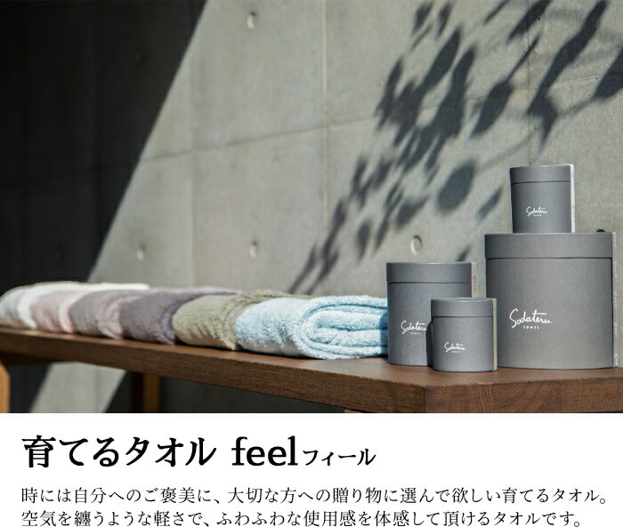 使い込むほどにふっくらふわふわに。愛着が持てる一枚となるのが、「育てるタオル」feel(フィール)です。空気を含んで膨らむ、スポンジーコットン100という綿糸を使用。