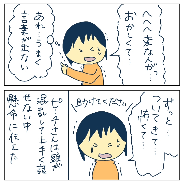 まとわりつかれた時どうする?4【稲漫画】 オリジナル漫画 2022年3月29日 ▼前回のお話はこちら まとわりつかれた時どうする?3【稲漫画】 駅で出会った人にまとわりつかれた恐怖体験©稲 次を読む まとわりつかれた時どうする?5【稲漫画】 駅で出会った人にまとわりつかれた恐怖体験©稲 稲さんの連載一覧はこちら 毎日更新!サラリーウーマン稲のエッセイ漫画 毎日更新!サラリーウーマン稲のエッセイ漫画 こちらのLovely漫画もおすすめ 優しそうなお爺さんが怖かったはなし1【稲漫画】 小学6年生が体験した恐怖の話!©稲 元彼がまさかの形で再び現れた話 1【香那】 先生×JKの、キュンとして切ない恋愛創作ストーリー! ©香那 ライター 稲 エッセイ漫画を描くサラリーウーマン!Instagram【@inasan_mainichi】 目次Related article / 関連記事 オリジナル漫画 顔に出にくいカップルの話【Lovely漫画】 azusaさんオリジナル、読み切り短編漫画の連載スタート!(不定期更新) 2022年3月29日 オリジナル漫画 里中さんと山内くんの両片想い【Lovely漫画】 告白しようと思うもいつも失敗してしまう里中さんと、勇気を出せずにいる山内くんの、初々しい短編連載スタート!©azusa 2022年3月29日 オリジナル漫画 結局、恋愛にも就職にもスナックでのバイトが一番役に立ったという話1【Lovely漫画】 女度アップや仕事につかえる小ネタなどを綴る新連載スタート!©ホシノモナカ 2022年3月29日 オリジナル漫画 2人暮らしのゆる家事日記~再生栽培のススメ~【連載】【Lovely漫画】 ©みんみ 2022年3月29日 オリジナル漫画 年下イケメン彼氏に翻弄されるオンナの毎日#4【Lovely漫画】 ©みんみ 2022年3月29日 恋愛漫画 お付き合い編 2【magari漫画】 みぎと雪さんのカップルエッセイ♡ ©magari 2022年10月5日 恋愛漫画 お付き合い編 3【magari漫画】 みぎと雪さんのカップルエッセイ♡ ©magari 2022年10月5日 恋愛漫画 お付き合い編 4【magari漫画】 みぎと雪さんのカップルエッセイ♡ ©magari 2022年10月5日 恋愛漫画 お付き合い編 5【magari漫画】 みぎと雪さんのカップルエッセイ♡ ©magari 2022年10月5日 恋愛漫画 お付き合い編 6【magari漫画】 みぎと雪さんのカップルエッセイ♡ ©magari 2022年10月5日 恋愛漫画 お付き合い編 7【magari漫画】 みぎと雪さんのカップルエッセイ♡ ©magari 2022年10月5日 連載 20歳で妊娠した話1【azusa】 ~わたしと夫がぷいちゃんに出会うまで~©azusa 2022年3月29日 連載 20歳で妊娠した話2【azusa】 ~わたしと夫がぷいちゃんに出会うまで~©azusa 2022年3月29日 連載 20歳で妊娠した話3【azusa】 ~わたしと夫がぷいちゃんに出会うまで~©azusa 2022年3月29日 連載 20歳で妊娠した話4【azusa】 ~わたしと夫がぷいちゃんに出会うまで~©azusa 2022年3月29日 連載 20歳で妊娠した話5【azusa】 ~わたしと夫がぷいちゃんに出会うまで~©azusa 2022年3月29日 連載 20歳で妊娠した話6【azusa】 ~わたしと夫がぷいちゃんに出会うまで~©azusa 2022年3月29日 連載 20歳で妊娠した話7【azusa】 ~わたしと夫がぷいちゃんに出会うまで~©azusa 2022年3月29日 連載 20歳で妊娠した話8【azusa】 ~わたしと夫がぷいちゃんに出会うまで~©azusa 2022年3月29日 連載 20歳で妊娠した話9【azusa】 ~わたしと夫がぷいちゃんに出会うまで~©azusa 2022年3月29日 オリジナル漫画 よかったらシェアしてね! URLをコピーしました! URLをコピーしました! 【夢占い】彼女に浮気された夢の意味13選|もしかして予知夢?心理状態も解説 | plush 恋愛相談はどこで?相談所・掲示板・アプリでする?男友達にする?
