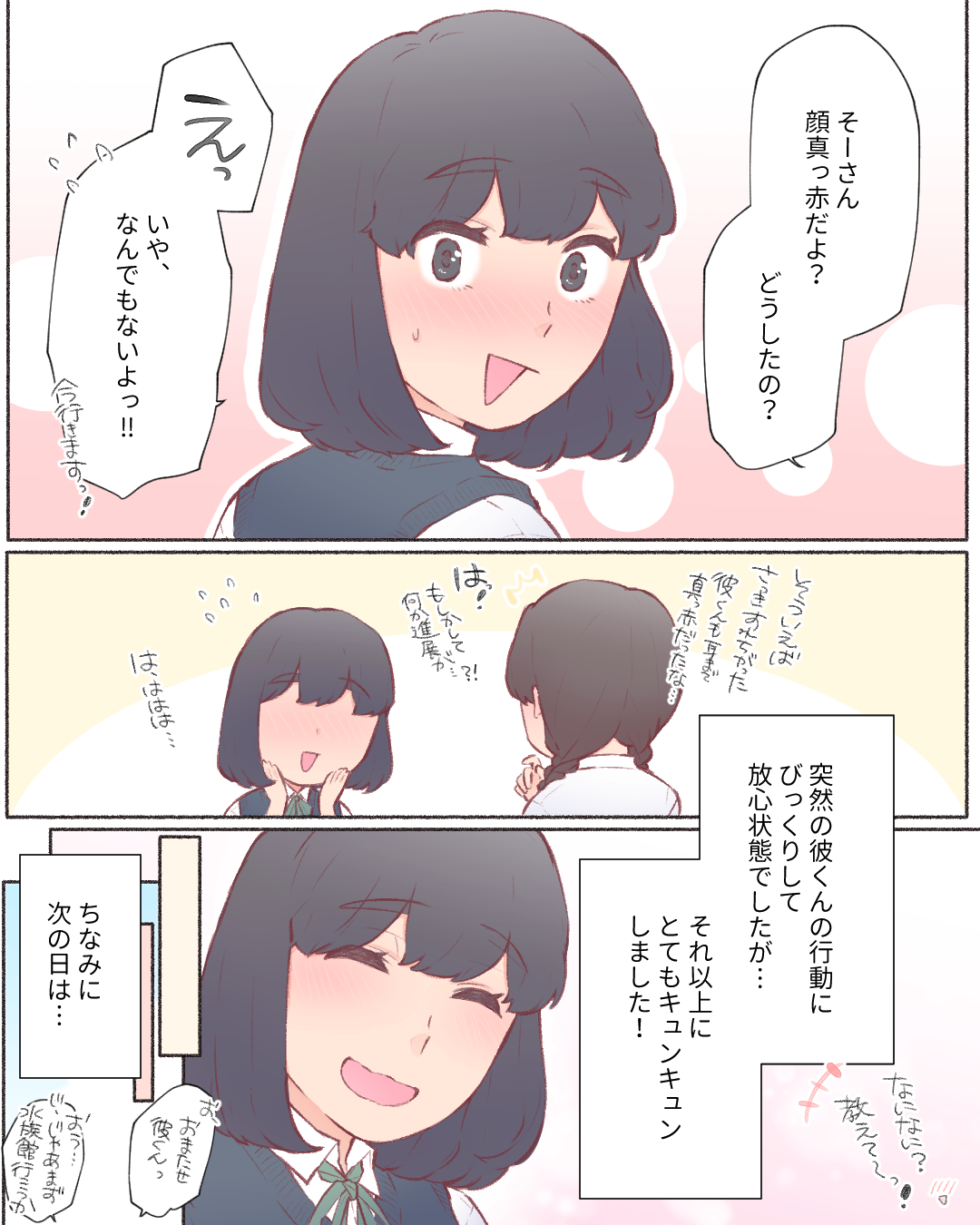 照れ屋な私たちの初々しい恋物語【Lovely漫画】 オリジナル漫画 2024年12月26日 目次 倖さんの作品をもっと読む! 倖さんの作品一覧【Lovely漫画】 倖さんの人気作をおまとめしています! こちらのLovely漫画もおすすめ! 自信【Lovely漫画】 高校の時のネガティブな私を変えてくれたのは今の彼。今朝だってー・・©倖/エピソード:ふく 私の大きな第一歩【Lovely漫画】 私が気になっている彼は、人見知りな私とは正反対で運動もできて明るいクラスの人気者。彼の優しさに触れ、ますます想いを募らせたある日、自分でもびっくり行動に!©yuzuna/エピソード:Ree 照れ屋さんな彼氏【Lovely漫画】 ちょっと意地悪したくなっちゃう…なんてね♡©ぴまを/エピソード:かりん 彼のジャージ【Lovely漫画】 大好きな彼が最近なんだか冷たい?そんなある日、半袖のジャージで寒がる私に気づいた彼は…©あんころもち/エピソード:ほっしぃ ライター Lovely編集部 編集部レポや最新情報など皆さんの「知りたい」をお届け!よろしくお願いします♡ Related article / 関連記事 オリジナル漫画 メンヘラ彼氏にサヨナラ【Lovely漫画】 ©みんみ 2022年3月29日 オリジナル漫画 年下イケメン彼氏に翻弄されるオンナの毎日#3【Lovely漫画】 ©みんみ 2022年3月29日 オリジナル漫画 2人暮らしのゆる家事日記~気まぐれ旦那の献立作りの巻き~後編【Lovely漫画】 ©みんみ 2022年3月29日 オリジナル漫画 年下イケメン彼氏に翻弄されるオンナの毎日#1【Lovely漫画】 ©みんみ「初めての○○の話 前編」 2022年3月29日 オリジナル漫画 年下イケメン彼氏に翻弄されるオンナの毎日#2【Lovely漫画】 ©みんみ「初めての○○の話 後編」 2022年3月29日 1 2 オリジナル漫画 よかったらシェアしてね! URLをコピーしました! URLをコピーしました! 私への扱いだけ雑なママ友33【稲漫画】 Lineの一言を恋愛関連に!暗号や彼とペアで楽しもう♡