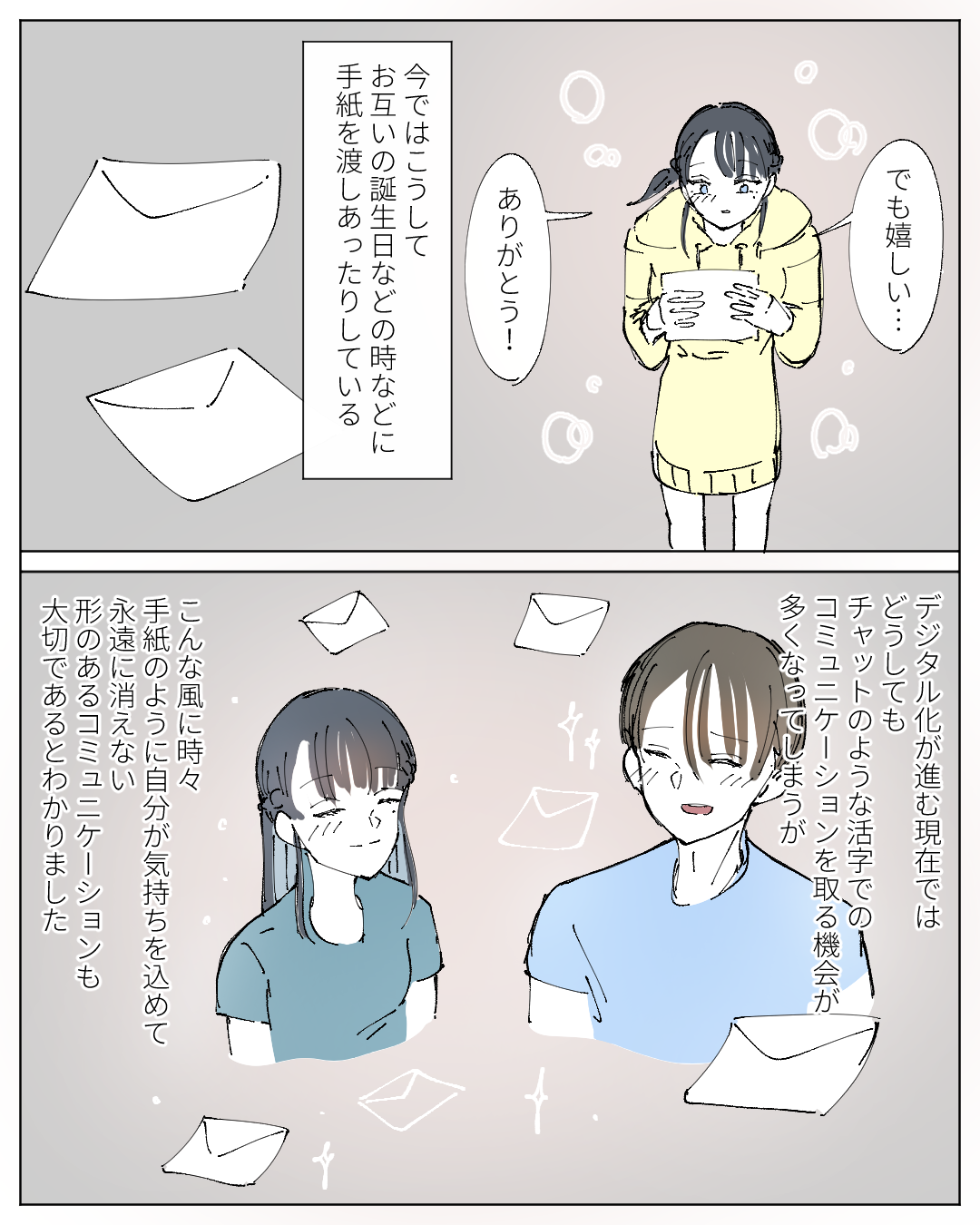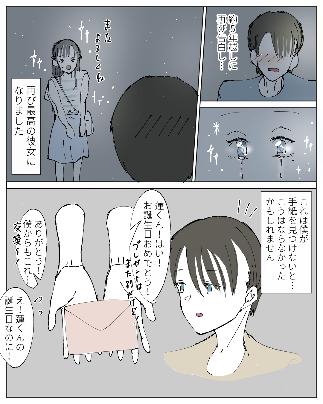 手紙が繋ぐもの【Lovely漫画】 オリジナル漫画 2024年12月27日 目次 suiさんの作品をもっと読む! suiさんの作品一覧【Lovely漫画】 suiさんの人気作をおまとめしています! こちらのLovely漫画もおすすめ! 今でも少し後悔している。【Lovely漫画】 高校生の時に毎日一緒にいた彼。クラスが離れて彼への恋心に気づくも、伝えられなかった。それから数年が経ち…©sui/エピソード:れいちゃん 君にとらわれ続ける。【Lovely漫画】 勇気があれば何か変わったかな…©suiさんオリジナルストーリー♡ あの日の後悔【Lovely漫画】 小6から付き合っていた幼馴染の彼氏。ある日些細なことで喧嘩をし、謝れない日々が続いていた。まさか一生仲直りできないなんて思いもせず…。©sui/エピソード:koko 付き合い始めの頃みたいにまた彼から愛されたい!【Lovely漫画】[PR] ©サクライ ライター Lovely編集部 編集部レポや最新情報など皆さんの「知りたい」をお届け!よろしくお願いします♡ Related article / 関連記事 オリジナル漫画 メンヘラ彼氏にサヨナラ【Lovely漫画】 ©みんみ 2022年3月29日 オリジナル漫画 年下イケメン彼氏に翻弄されるオンナの毎日#3【Lovely漫画】 ©みんみ 2022年3月29日 オリジナル漫画 2人暮らしのゆる家事日記~気まぐれ旦那の献立作りの巻き~後編【Lovely漫画】 ©みんみ 2022年3月29日 オリジナル漫画 年下イケメン彼氏に翻弄されるオンナの毎日#1【Lovely漫画】 ©みんみ「初めての○○の話 前編」 2022年3月29日 オリジナル漫画 年下イケメン彼氏に翻弄されるオンナの毎日#2【Lovely漫画】 ©みんみ「初めての○○の話 後編」 2022年3月29日 1 2 3 4 オリジナル漫画 よかったらシェアしてね! URLをコピーしました! URLをコピーしました! 私への扱いだけ雑なママ友34【稲漫画】 年上彼氏の可愛いところ【Lovely漫画】