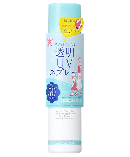 服にかかってもOKなくらい透明&さらさらなUVスプレーです。紫外線カット成分を100%シルクカプセルINしているので、肌に直接触れません。汗・水・皮脂に強いウォータープルーフなのに石けんで落とせるのもポイントです。
