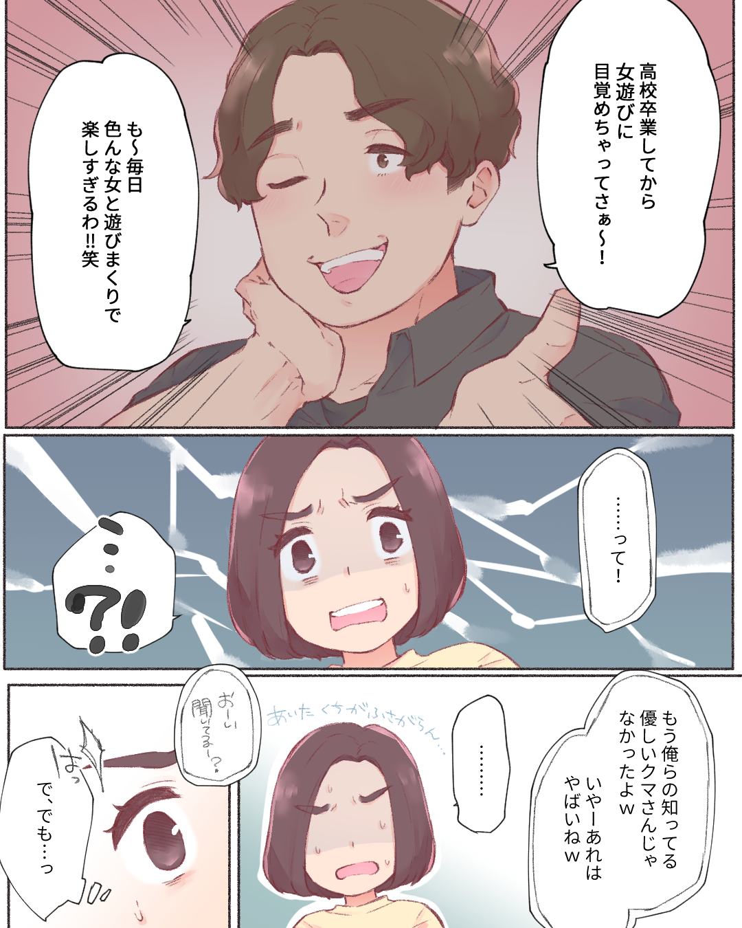 変わり果てた彼【Lovely漫画】 オリジナル漫画 2024年8月2日 目次 倖さんの作品をもっと読む! 倖さんの作品一覧【Lovely漫画】 倖さんの人気作をおまとめしています! こちらのLovely漫画もおすすめ 女の勘【Lovely漫画】 半同棲中の彼氏がどうも怪しい。”女の勘”は当たり…。©倖/エピソード:砂糖さん 都合の良い女【Lovely漫画】 高校の時に両思いだったけど付き合わず疎遠になってしまった彼と私。大学生の時にSNSから繋がったことがきっかけで…。©なぁ/エピソード:키 私の太陽(前編)【Lovely漫画】 私を照らしてくれる太陽は、いつも側に居てくれる君だった。©おはぎ/エピソード:ひな 切なく懐かしい話【Lovely漫画】 中高一貫校の中一だった頃、私は彼氏と友だちに裏切られた。それから4年後の雨が降る日に…。©望月悠/エピソード:りみ ライター Lovely編集部 編集部レポや最新情報など皆さんの「知りたい」をお届け!よろしくお願いします♡ Related article / 関連記事 オリジナル漫画 メンヘラ彼氏にサヨナラ【Lovely漫画】 ©みんみ 2022年3月29日 オリジナル漫画 年下イケメン彼氏に翻弄されるオンナの毎日#3【Lovely漫画】 ©みんみ 2022年3月29日 オリジナル漫画 2人暮らしのゆる家事日記~気まぐれ旦那の献立作りの巻き~後編【Lovely漫画】 ©みんみ 2022年3月29日 オリジナル漫画 年下イケメン彼氏に翻弄されるオンナの毎日#1【Lovely漫画】 ©みんみ「初めての○○の話 前編」 2022年3月29日 オリジナル漫画 年下イケメン彼氏に翻弄されるオンナの毎日#2【Lovely漫画】 ©みんみ「初めての○○の話 後編」 2022年3月29日 1 2 オリジナル漫画 よかったらシェアしてね! URLをコピーしました! URLをコピーしました! その笑顔以外欲しくない。【Lovely漫画】 意地悪をする心理!意地悪な人の性格の特徴は?対処法も解説