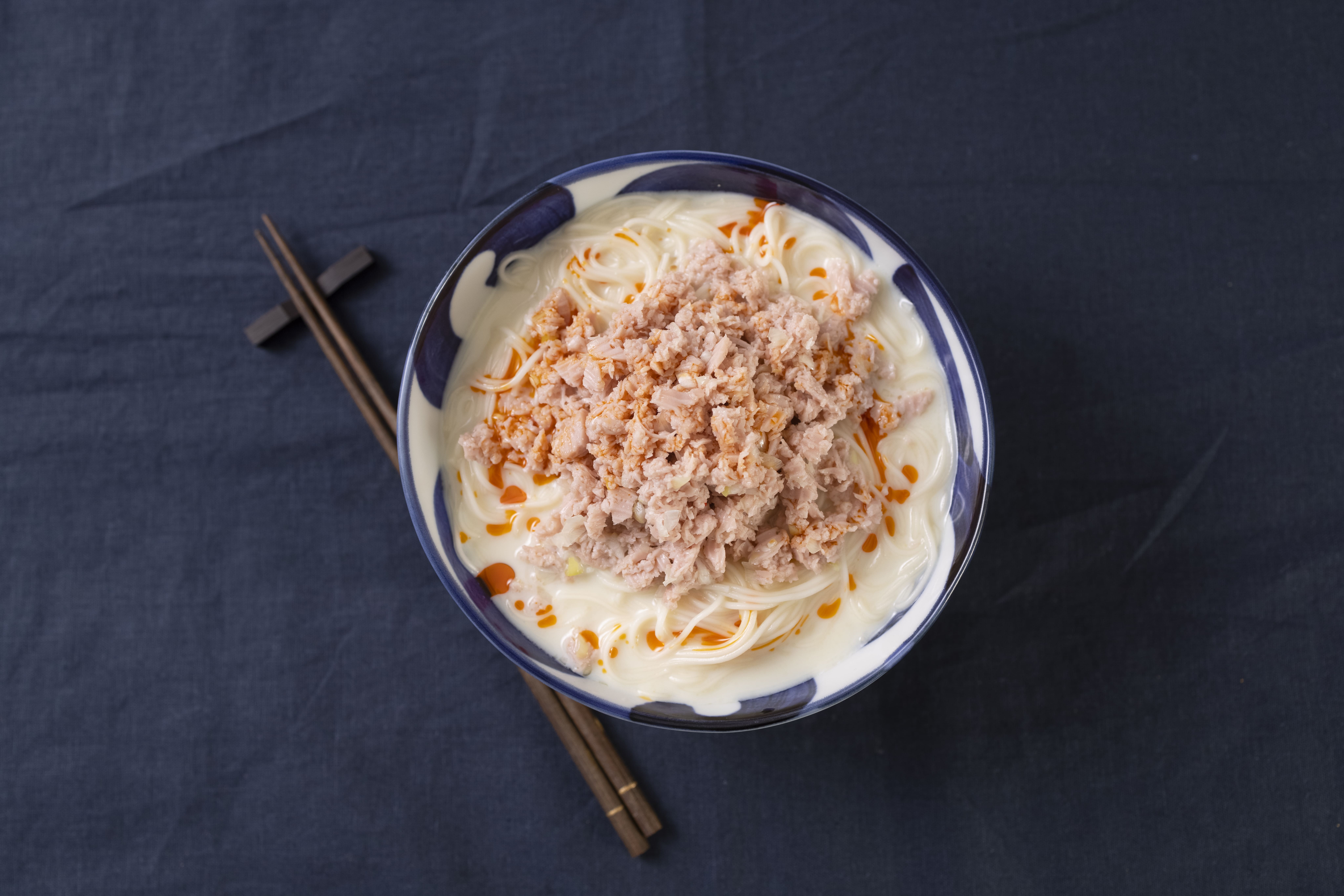 まろやかな豆乳スープの中でピリッとしたラー油の辛さが食欲そそる、暑い夏おすすめの一品です。