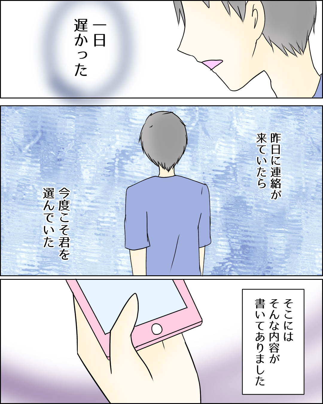 結ばれなかった赤い糸【Lovely漫画】 オリジナル漫画 2025年2月10日 目次 kurumiさんの作品をもっと読む! kurumiさんの作品一覧【Lovely漫画】 kurumiさんの人気作をおまとめしています! こちらのLovely漫画もおすすめ こじらせた初恋【Lovely漫画】 私の初恋は小学生の頃、友達の勧めで入ったサッカークラブのコーチだった。不完全燃焼で終わった初恋を引きずりながらも時は流れ、大学生になった私に彼氏ができた頃、久々にコーチから連絡があり…©どんぐり/エピソード:あちゃも 最高の友達のままで【Lovely漫画】 保育園から高校までずっと同じだった幼なじみ。友達から恋人の関係になり、幸せだったはずなのに…©はにぃ/エピソード:匿名 いつか素敵な人と…【Lovely漫画】 同じ学年で仲のいい男子と二人きりで帰ることが続いたある日、彼から告白された。けれど私は過去の恋愛の失敗から慎重になってしまい…©ai/エピソード:匿名 ライター Lovely編集部 編集部レポや最新情報など皆さんの「知りたい」をお届け!よろしくお願いします♡ Related article / 関連記事 オリジナル漫画 メンヘラ彼氏にサヨナラ【Lovely漫画】 ©みんみ 2022年3月29日 オリジナル漫画 年下イケメン彼氏に翻弄されるオンナの毎日#3【Lovely漫画】 ©みんみ 2022年3月29日 オリジナル漫画 2人暮らしのゆる家事日記~気まぐれ旦那の献立作りの巻き~後編【Lovely漫画】 ©みんみ 2022年3月29日 オリジナル漫画 年下イケメン彼氏に翻弄されるオンナの毎日#1【Lovely漫画】 ©みんみ「初めての○○の話 前編」 2022年3月29日 オリジナル漫画 年下イケメン彼氏に翻弄されるオンナの毎日#2【Lovely漫画】 ©みんみ「初めての○○の話 後編」 2022年3月29日 1 2 3 4 オリジナル漫画 よかったらシェアしてね! URLをコピーしました! URLをコピーしました! モラハラ夫は改心するのか39【稲漫画】 結婚式におすすめの曲・BGM!洋楽まとめ