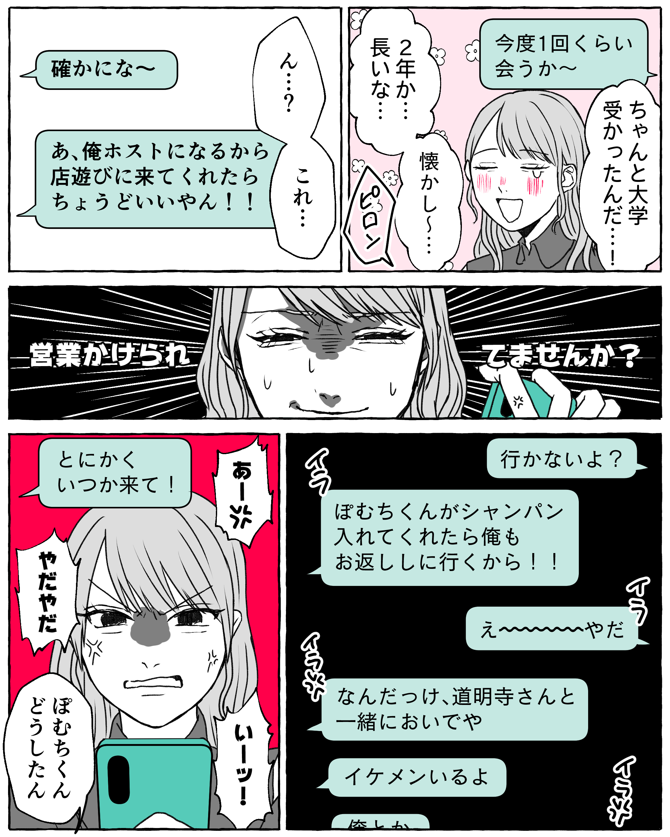 ネッ友がホストになったので会いに行った話 1【山田ぽむち漫画】 オリジナル漫画 2022年3月29日 目次 ▼続きはこちら ネッ友がホストになったので会いに行った話 2【山田ぽむち漫画】 ネッ友がホストになったので会いに行った話 ©山田ぽむち ▼山田ぽむちさんの漫画一覧 山田ぽむちさん漫画一覧 同棲会議!!©山田ぽむち ▼こちらのlovely漫画もオススメ! 学歴コンプが上京したら泥沼にハマった話 1【山田ぽむち漫画】 学歴コンプな私が上京したら泥沼にハマった話 ©山田ぽむち 学歴コンプだけど上京してモテたい 1 【山田ぽむち漫画】 学歴コンプな私が上京してモテたい話 ©山田ぽむち ライター 山田ぽむち Instagram[@___dokkoisho___]にて、陰キャ彼氏との日常や、自分の過去の失敗などを漫画にしています。 Related article / 関連記事 オリジナル漫画 メンヘラ彼氏にサヨナラ【Lovely漫画】 ©みんみ 2022年3月29日 オリジナル漫画 年下イケメン彼氏に翻弄されるオンナの毎日#3【Lovely漫画】 ©みんみ 2022年3月29日 オリジナル漫画 2人暮らしのゆる家事日記~気まぐれ旦那の献立作りの巻き~後編【Lovely漫画】 ©みんみ 2022年3月29日 オリジナル漫画 年下イケメン彼氏に翻弄されるオンナの毎日#1【Lovely漫画】 ©みんみ「初めての○○の話 前編」 2022年3月29日 オリジナル漫画 年下イケメン彼氏に翻弄されるオンナの毎日#2【Lovely漫画】 ©みんみ「初めての○○の話 後編」 2022年3月29日 1 2 オリジナル漫画 よかったらシェアしてね! URLをコピーしました! URLをコピーしました! 【夢占い】彼女に浮気された夢の意味13選|もしかして予知夢?心理状態も解説 | plush 恋愛相談はどこで?相談所・掲示板・アプリでする?男友達にする?