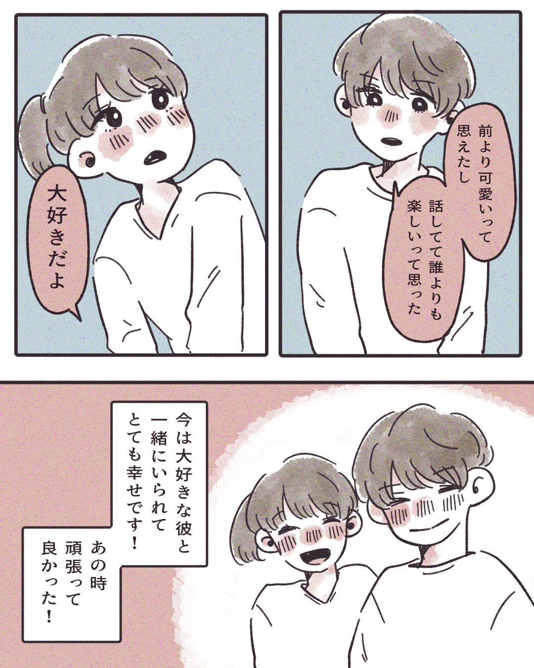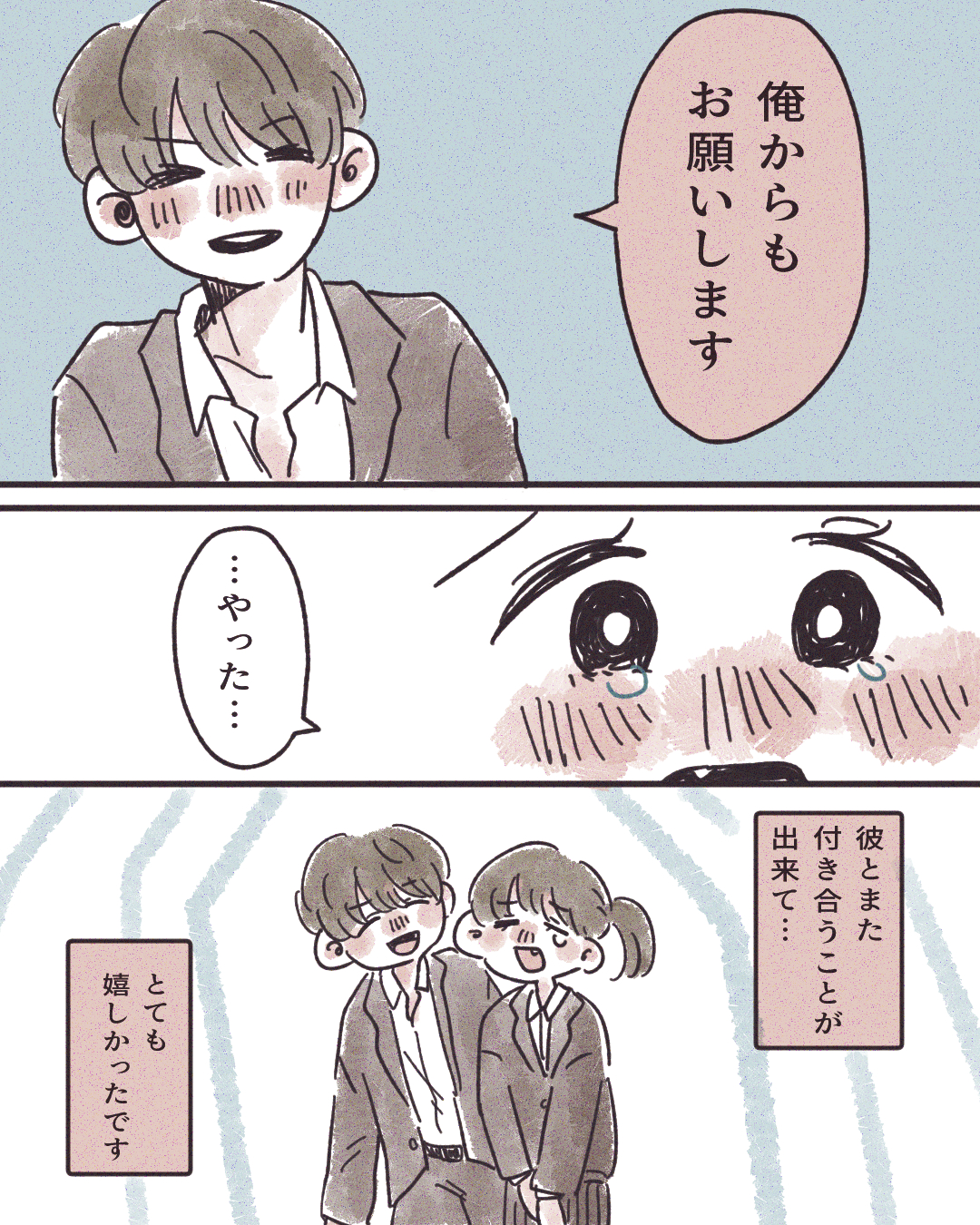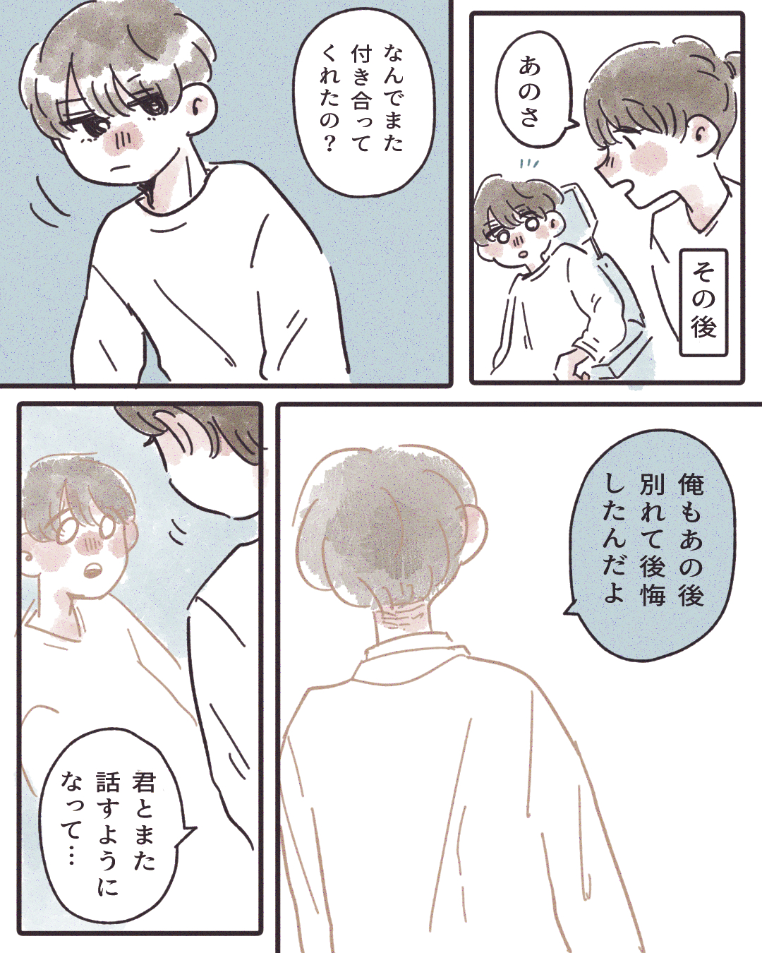 もう一度あなたと付き合いたい…!【Lovely漫画】 オリジナル漫画 2024年11月14日 目次 はるさんの作品をもっと読む! はるさんの作品一覧【Lovely漫画】 はるさんの人気作をおまとめしています! こちらのLovely漫画もおすすめ! この恋は無駄なんかじゃない【Lovely漫画】 体育の授業で一目惚れした彼と連絡先を交換できた…!そして二人は付き合う事に♡でも、あるキッカケが心の距離を生み出してしまった…。©はる/エピソード:匿名 雨の日は、二人の距離が近くなる【Lovely漫画】 片思い相手の彼と偶然二人きりに。恋バナをはぐらかされたと思ったら、突然…彼が近付いてきて…!©ちビ/エピソード:Baby 2年前の彼【Lovely漫画】 夢にまで見てしまう元カレとの思い出。忘れられない毎日を過ごしていたら、突然連絡が届いた…。©しのだちかこ/エピソード:みのり 一番の青春をくれた人【Lovely漫画】 親友から恋人になった私達の青春物語。©匿名/エピソード:ゆうり ライター Lovely編集部 編集部レポや最新情報など皆さんの「知りたい」をお届け!よろしくお願いします♡ Related article / 関連記事 オリジナル漫画 メンヘラ彼氏にサヨナラ【Lovely漫画】 ©みんみ 2022年3月29日 オリジナル漫画 年下イケメン彼氏に翻弄されるオンナの毎日#3【Lovely漫画】 ©みんみ 2022年3月29日 オリジナル漫画 2人暮らしのゆる家事日記~気まぐれ旦那の献立作りの巻き~後編【Lovely漫画】 ©みんみ 2022年3月29日 オリジナル漫画 年下イケメン彼氏に翻弄されるオンナの毎日#1【Lovely漫画】 ©みんみ「初めての○○の話 前編」 2022年3月29日 オリジナル漫画 年下イケメン彼氏に翻弄されるオンナの毎日#2【Lovely漫画】 ©みんみ「初めての○○の話 後編」 2022年3月29日 1 2 3 オリジナル漫画 よかったらシェアしてね! URLをコピーしました! URLをコピーしました! ヤベェ同期に困ってます!!63【稲漫画】 髪がボサボサする原因は?へアケア方法のポイントも解説します!