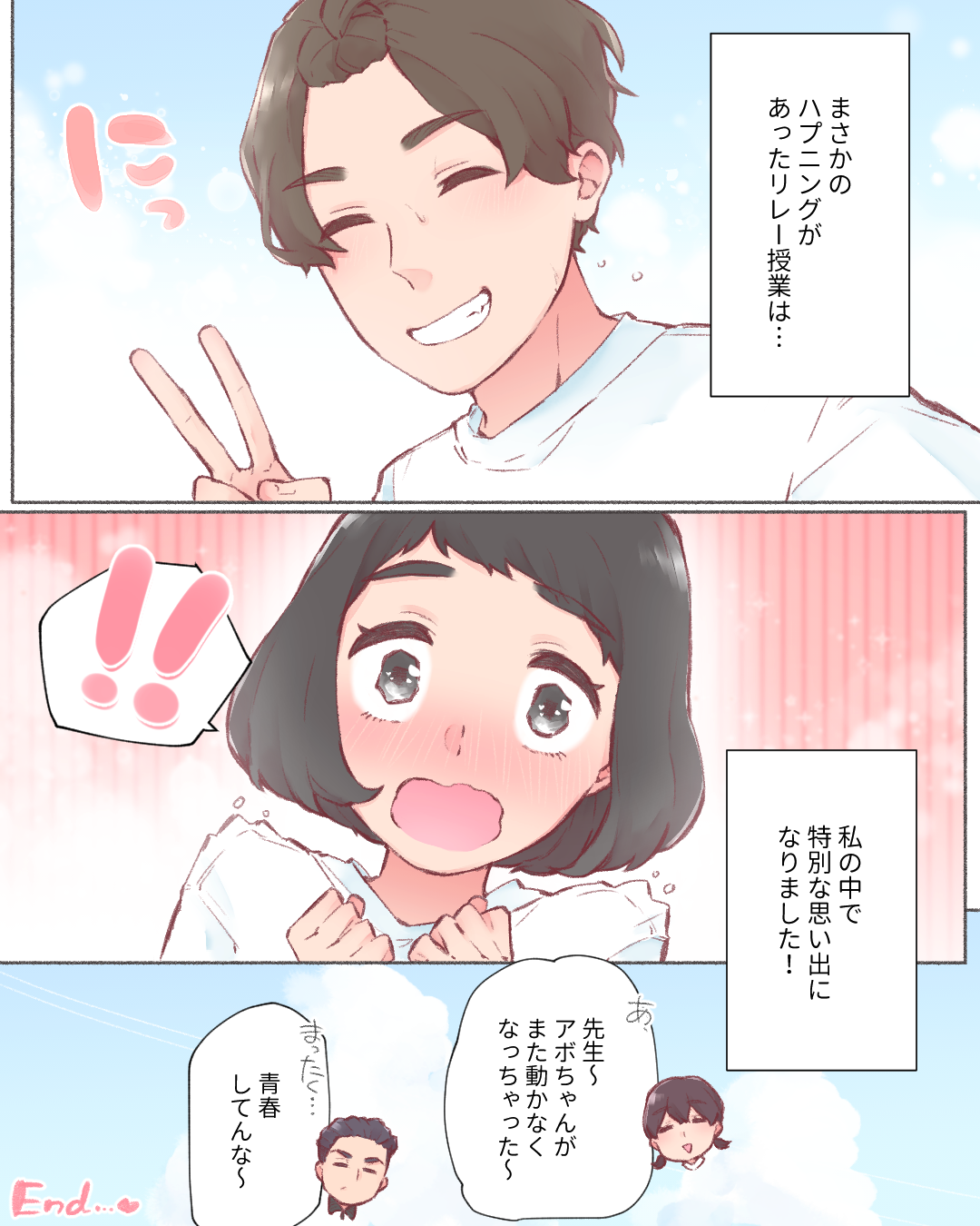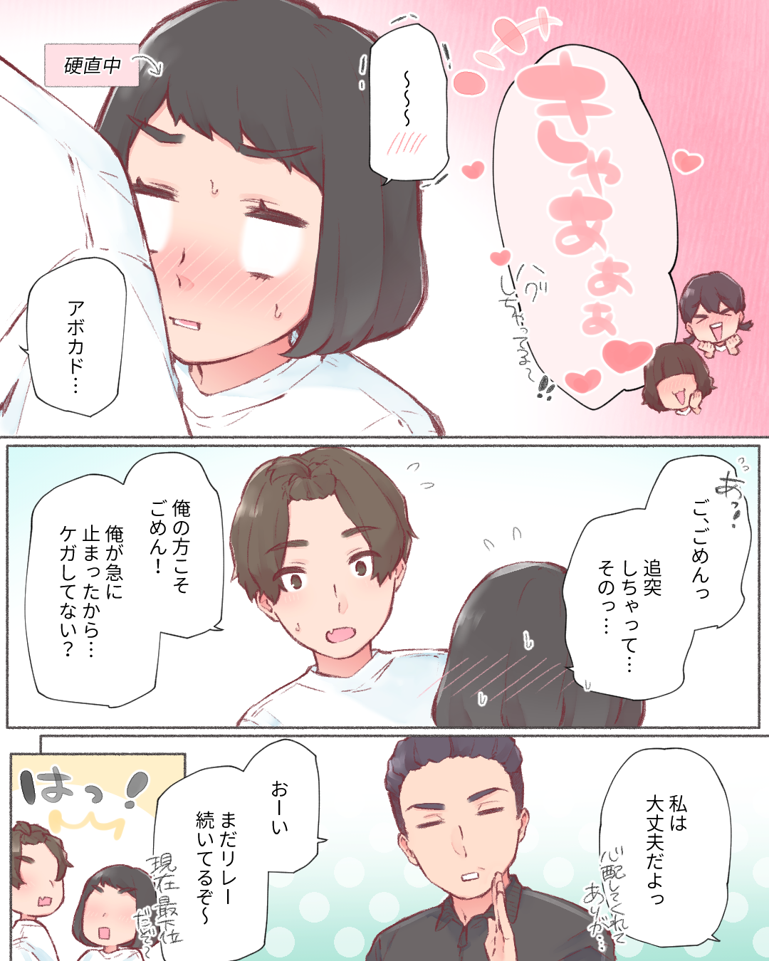 リレーの練習【Lovely漫画】 オリジナル漫画 2024年12月11日 目次 倖さんの作品をもっと読む! 倖さんの作品一覧【Lovely漫画】 倖さんの人気作をおまとめしています! こちらのLovely漫画もおすすめ! 優しさ×愛情のお弁当♡【Lovely漫画】 昨日は教室にお弁当箱を忘れて、お小遣いもピンチだから今日はお昼抜き…。空腹に耐えていたら、隣のクラスの彼氏が「屋上に行こう」と…。©倖/エピソード:モル 体育祭で恋に落ちました…♡【Lovely漫画】 体育祭当日、急遽リレーを2倍の距離走る事になった私…。緊張で固まっていると、ポンッと肩を叩かれて…!©おはぎ/エピソード:アンちゃん キックオフは遠回り【Lovely漫画】 本当はあの頃からキャプテンの事が好きだったのかもしれない…。友情が恋愛に変わった私の物語。©はる/エピソード:匿名 体育祭のご褒美【Lovely漫画】 片思い中の彼が、憂鬱な体育祭を楽しい行事に変えてくれました♡©おなか/エピソード:るるる ライター Lovely編集部 編集部レポや最新情報など皆さんの「知りたい」をお届け!よろしくお願いします♡ Related article / 関連記事 オリジナル漫画 メンヘラ彼氏にサヨナラ【Lovely漫画】 ©みんみ 2022年3月29日 オリジナル漫画 年下イケメン彼氏に翻弄されるオンナの毎日#3【Lovely漫画】 ©みんみ 2022年3月29日 オリジナル漫画 2人暮らしのゆる家事日記~気まぐれ旦那の献立作りの巻き~後編【Lovely漫画】 ©みんみ 2022年3月29日 オリジナル漫画 年下イケメン彼氏に翻弄されるオンナの毎日#1【Lovely漫画】 ©みんみ「初めての○○の話 前編」 2022年3月29日 オリジナル漫画 年下イケメン彼氏に翻弄されるオンナの毎日#2【Lovely漫画】 ©みんみ「初めての○○の話 後編」 2022年3月29日 1 2 オリジナル漫画 よかったらシェアしてね! URLをコピーしました! URLをコピーしました! 彼女の行動が可愛くてしょうがない【Lovely漫画】 LINEでそっけない返信・態度の男性心理とその対処法解説!