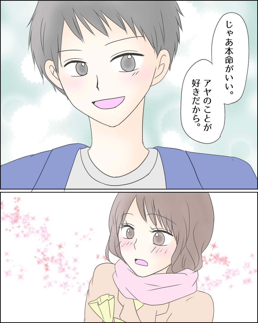 想い出のバレンタイン【Lovely漫画】 オリジナル漫画 2025年2月14日 目次 kurumiさんの作品をもっと読む! kurumiさんの作品一覧【Lovely漫画】 kurumiさんの人気作をおまとめしています! こちらのLovely漫画もおすすめ! 結ばれなかった赤い糸【Lovely漫画】 両想いのはずだった。あの時、選択を間違えなければ良かった。大好きな人との短く儚い恋物語。©kurumi/エピソード:匿名 口下手彼氏の愛情表現【Lovely漫画】 口下手でそっけない彼とのお泊りの日。ウトウト寝そうになっていると、耳元で聞こえてきたのは…。©なぁ/エピソード:ちょび 二人で抜け出したあの夜【Lovely漫画】 スキー合宿の夜、片思い相手の彼に「抜け出さない?」と誘われた…。©赤城/エピソード:千姫 勘違いから始まる恋【Lovely漫画】 同じ中学の先輩とバイト先が同じになった。ある日、「先輩は私のこと好き…?」という勘違いがキッカケで、2人は意識し合っていき…。©倖/エピソード:鈴木さん ライター Lovely編集部 編集部レポや最新情報など皆さんの「知りたい」をお届け!よろしくお願いします♡ Related article / 関連記事 オリジナル漫画 メンヘラ彼氏にサヨナラ【Lovely漫画】 ©みんみ 2022年3月29日 オリジナル漫画 年下イケメン彼氏に翻弄されるオンナの毎日#3【Lovely漫画】 ©みんみ 2022年3月29日 オリジナル漫画 2人暮らしのゆる家事日記~気まぐれ旦那の献立作りの巻き~後編【Lovely漫画】 ©みんみ 2022年3月29日 オリジナル漫画 年下イケメン彼氏に翻弄されるオンナの毎日#1【Lovely漫画】 ©みんみ「初めての○○の話 前編」 2022年3月29日 オリジナル漫画 年下イケメン彼氏に翻弄されるオンナの毎日#2【Lovely漫画】 ©みんみ「初めての○○の話 後編」 2022年3月29日 1 2 オリジナル漫画 よかったらシェアしてね! URLをコピーしました! URLをコピーしました! 最後の恋にしたい【Lovely漫画】 妊娠2ヶ月目の妊婦の症状!お腹が出る?胎児はどんな感じ?