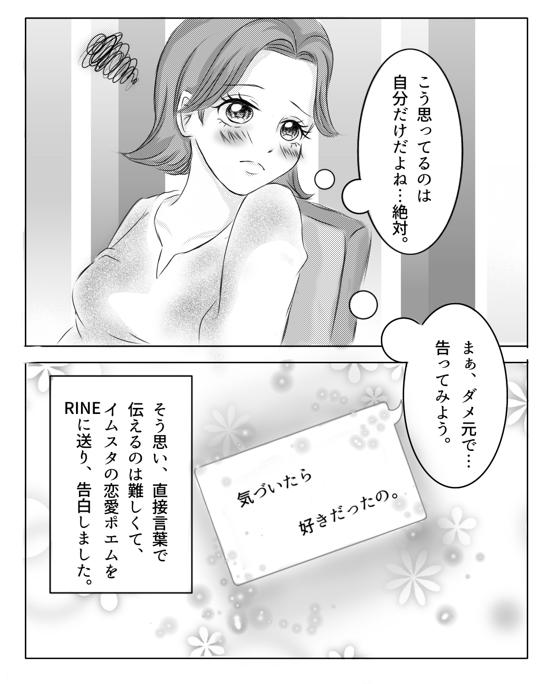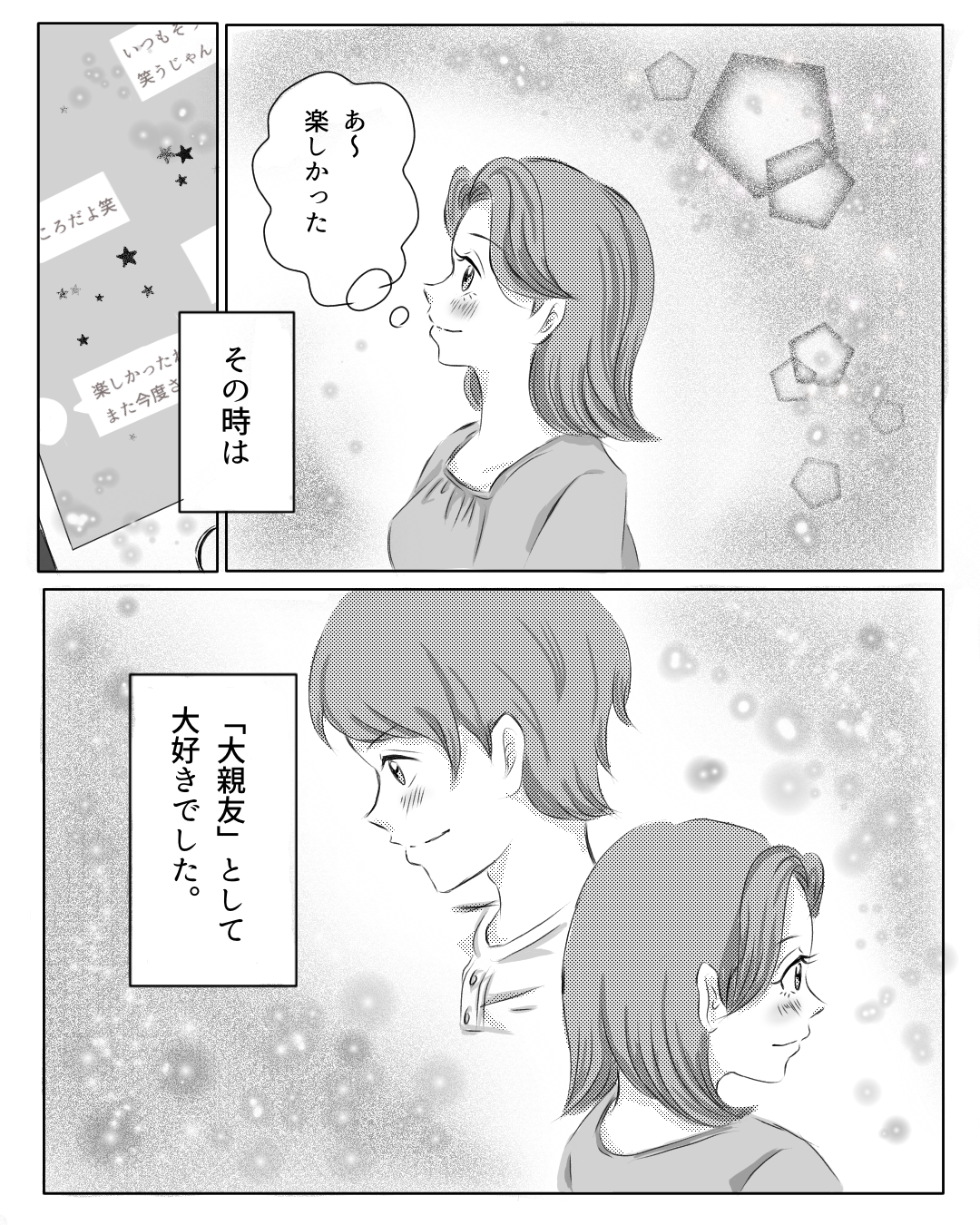 「大親友」から「恋愛」へ…【Lovely漫画】 オリジナル漫画 2024年10月21日 目次 おひつじぐもさんの作品をもっと読む! おひつじぐもさんの作品一覧【Lovely漫画】 おひつじぐもさんの作品をおまとめしています! こちらのLovely漫画もおすすめ! 漫画みたいな恋の始まり【Lovely漫画】 高校3年生の私には、気になる人がいる。明るくて優しくてお喋りも楽しい…♡そんな彼に、最後の体育祭で呼び止められ…?!©れも/エピソード:あずき 超遠距離恋愛【Lovely漫画】 外国語勉強を目的としたアプリで知り合ったのは、海外在住の彼。親切で、愛情をストレートに伝えてくれて…。会った事はまだないけれど、私たちは付き合う事に♡そして1年後、彼の住む国へ…!©なたでこ子/エピソード:めぐみ サプライズが好きな彼【Lovely漫画】 遠距離中の彼との記念日は1人ぼっち。彼は学校があるし、仕方ない…。寂しい気持ちのまま自宅にいると、突然「ピンポーン」とチャイム音が…!©りね/エピソード:m 【恋愛診断】あなたと本当に相性のいい男性タイプは?深層心理で最高の恋人を見つけちゃおう♡ 「これまで何度か付き合ってみたけど、長く続かない」「タイプなのに、ケンカばかり…」なかなか恋愛がうまくいかないと嘆いていませんか?もしかしたら、今までお付き合いしてきた男性との相性が悪かったのかもしれません。この無料の恋愛診断では、あなたと本当に相性のいいお相手の男性を深層心理から導き出します♡ ライター Lovely編集部 編集部レポや最新情報など皆さんの「知りたい」をお届け!よろしくお願いします♡ Related article / 関連記事 オリジナル漫画 メンヘラ彼氏にサヨナラ【Lovely漫画】 ©みんみ 2022年3月29日 オリジナル漫画 年下イケメン彼氏に翻弄されるオンナの毎日#3【Lovely漫画】 ©みんみ 2022年3月29日 オリジナル漫画 2人暮らしのゆる家事日記~気まぐれ旦那の献立作りの巻き~後編【Lovely漫画】 ©みんみ 2022年3月29日 オリジナル漫画 年下イケメン彼氏に翻弄されるオンナの毎日#1【Lovely漫画】 ©みんみ「初めての○○の話 前編」 2022年3月29日 オリジナル漫画 年下イケメン彼氏に翻弄されるオンナの毎日#2【Lovely漫画】 ©みんみ「初めての○○の話 後編」 2022年3月29日 1 2 オリジナル漫画 よかったらシェアしてね! URLをコピーしました! URLをコピーしました! ヤベェ同期に困ってます!!37【稲漫画】 パーソナルカラーがオータムの芸能人は誰?特徴や似合う色は?
