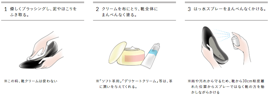 ②革用クリームで革靴を保湿する。
