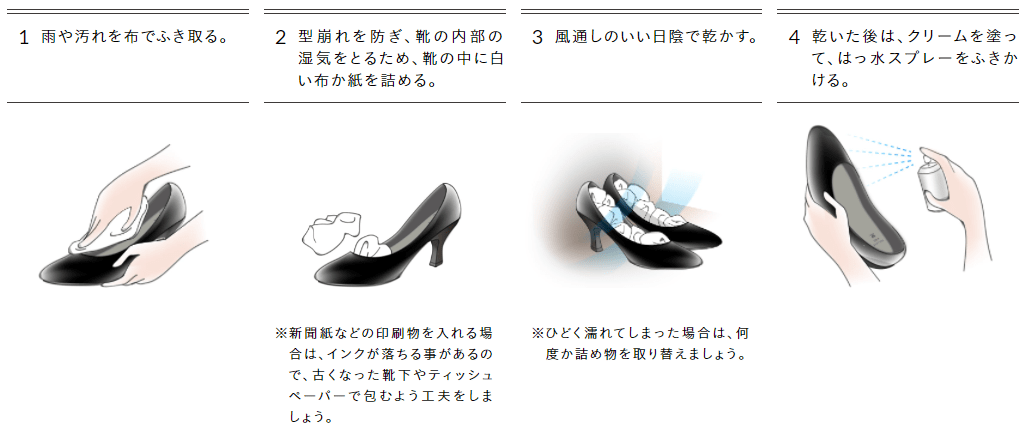 雨の日の場合のお手入れ方法もご紹介します。