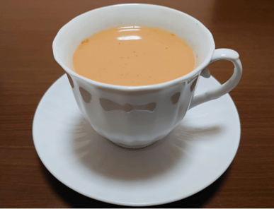 ②カップの2/3までお湯を注ぎ、ティーバッグを入れてやや濃いめの紅茶を作る。