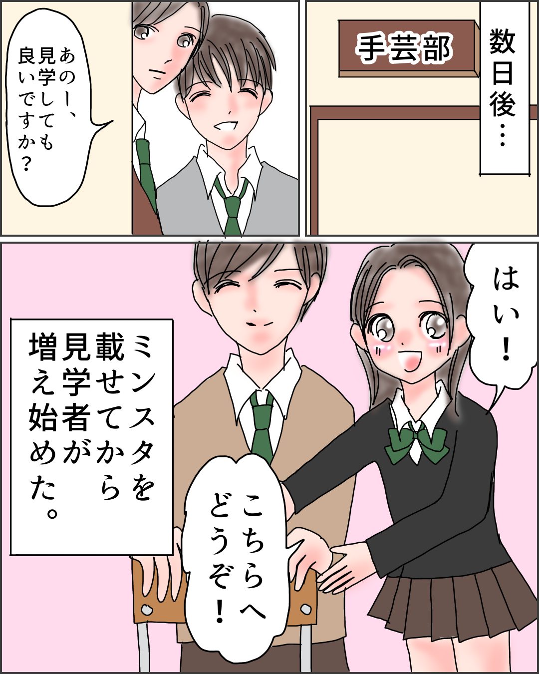 恋はソーイング!3【完】【Lovely漫画】 オリジナル漫画 2022年3月29日 ▼前回のお話はこちら 恋はソーイング!2【Lovely漫画】 同じ学年の手芸部に所属する琴音と蒼太。春に先輩が卒業したら、部員が2人に=手芸部から手芸同好会に…!そこで部員を増やすために2人が考えた策とは?!前向きになる恋のお話♡ 目次Related article / 関連記事 オリジナル漫画 メンヘラ彼氏にサヨナラ【Lovely漫画】 ©みんみ 2022年3月29日 オリジナル漫画 年下イケメン彼氏に翻弄されるオンナの毎日#3【Lovely漫画】 ©みんみ 2022年3月29日 オリジナル漫画 2人暮らしのゆる家事日記~気まぐれ旦那の献立作りの巻き~後編【Lovely漫画】 ©みんみ 2022年3月29日 オリジナル漫画 年下イケメン彼氏に翻弄されるオンナの毎日#1【Lovely漫画】 ©みんみ「初めての○○の話 前編」 2022年3月29日 オリジナル漫画 年下イケメン彼氏に翻弄されるオンナの毎日#2【Lovely漫画】 ©みんみ「初めての○○の話 後編」 2022年3月29日 1 2 オリジナル漫画 よかったらシェアしてね! URLをコピーしました! URLをコピーしました! 【夢占い】彼女に浮気された夢の意味13選|もしかして予知夢?心理状態も解説 | plush 恋愛相談はどこで?相談所・掲示板・アプリでする?男友達にする?