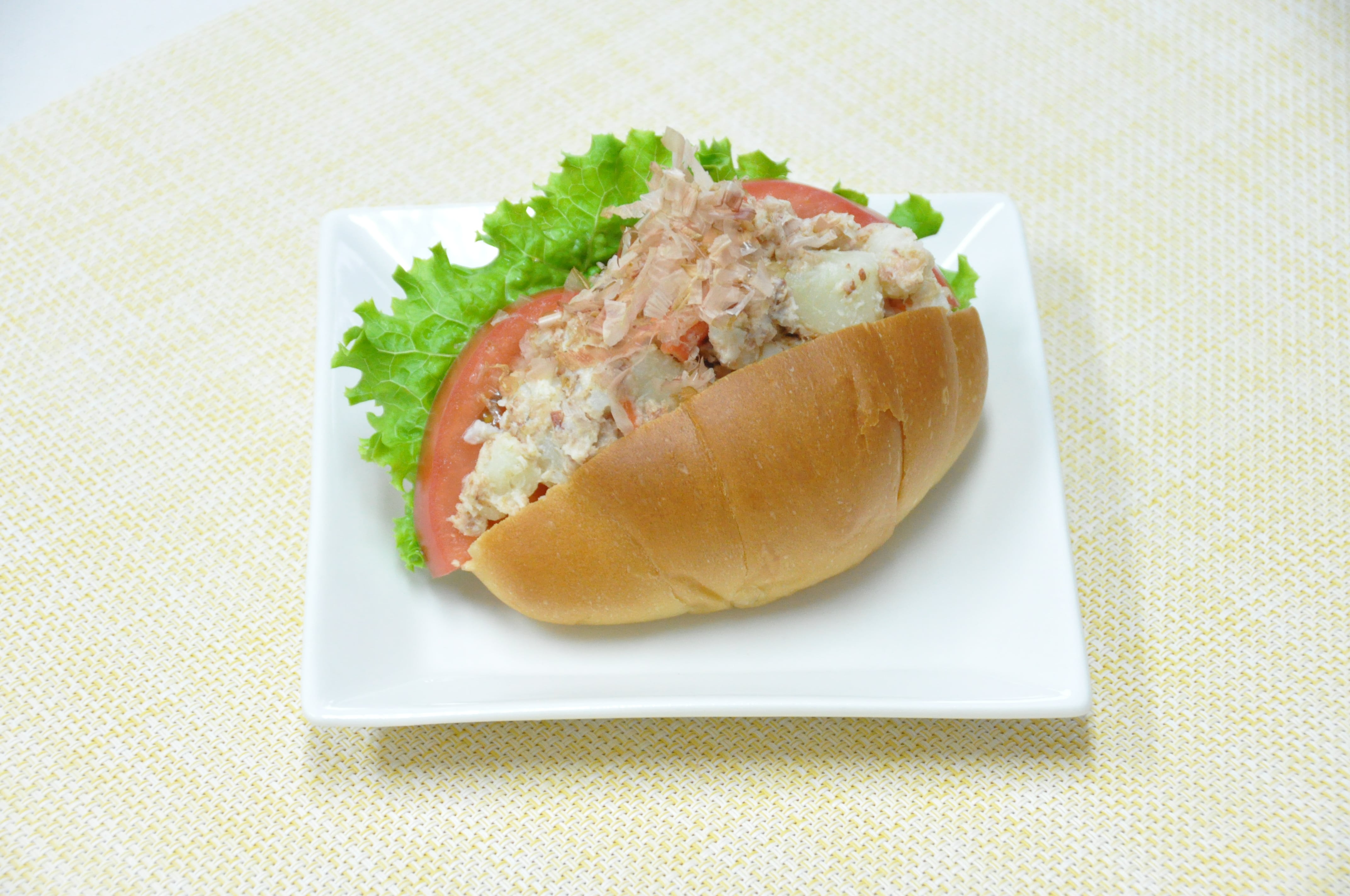 ロールパンで「かつお節ポテトサラダサンド」