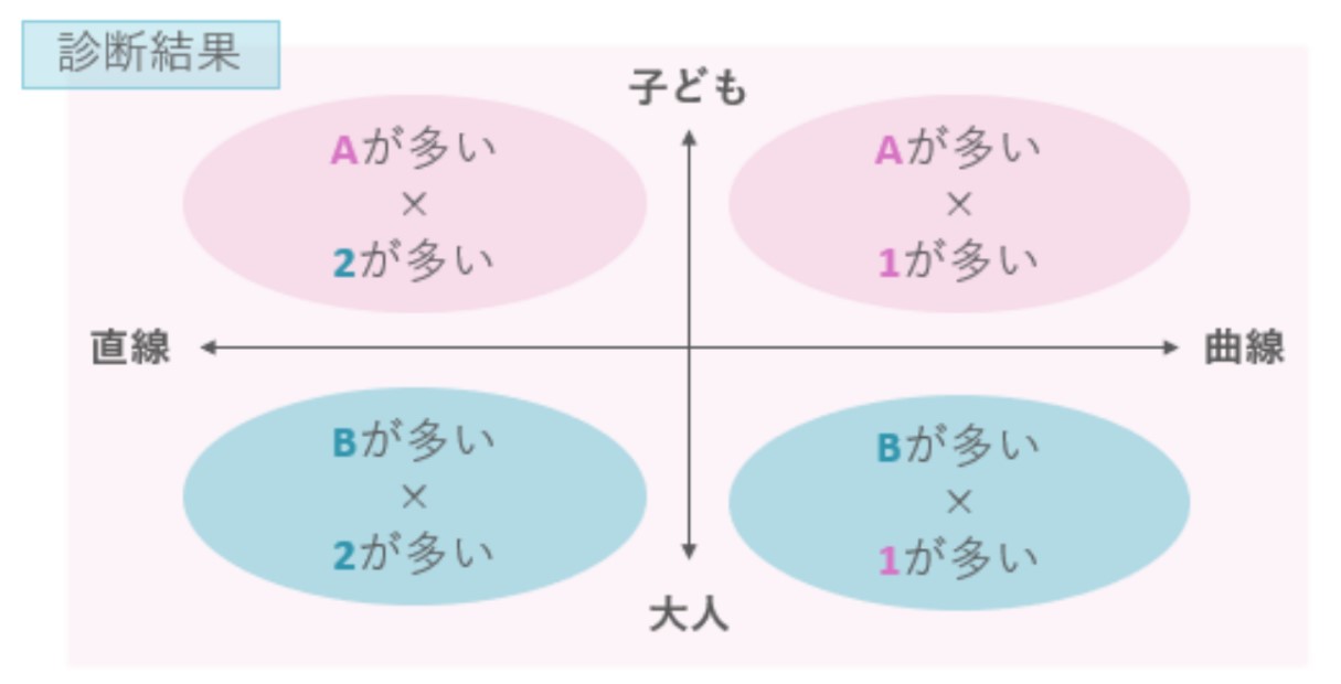 - Step1の「Aが多い」×Step2の「1が多い」方は『CUTEタイプ』