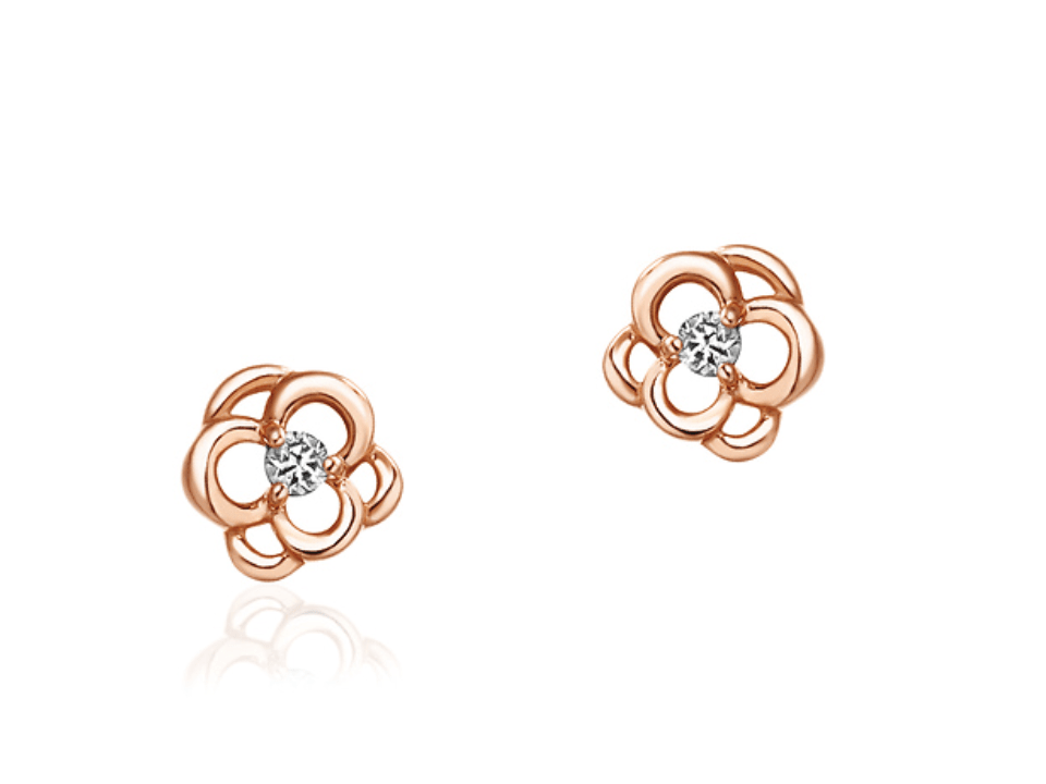 ころんとした丸みのある小花モチーフが、キュートフェイスにぴったりマッチ。中心にダイヤモンドをあしらうことで、子どもっぽくならず大人ガーリーな雰囲気に。