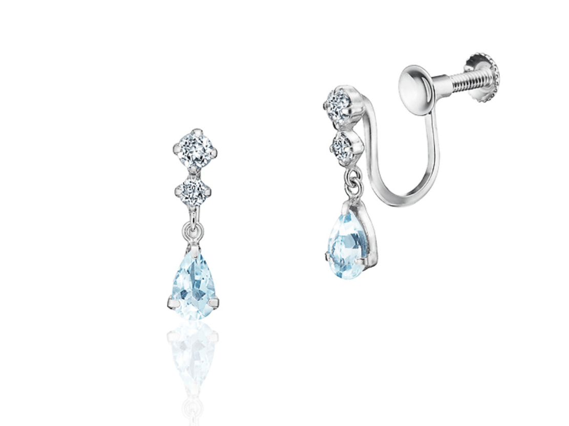 アクアマリンのみずみずしい輝きが、フレッシュさんの爽やかな魅力をさらに格上げしてくれるイヤリング。小ぶりながらも美しく眩い煌めきが、耳元を華やかに彩ります。