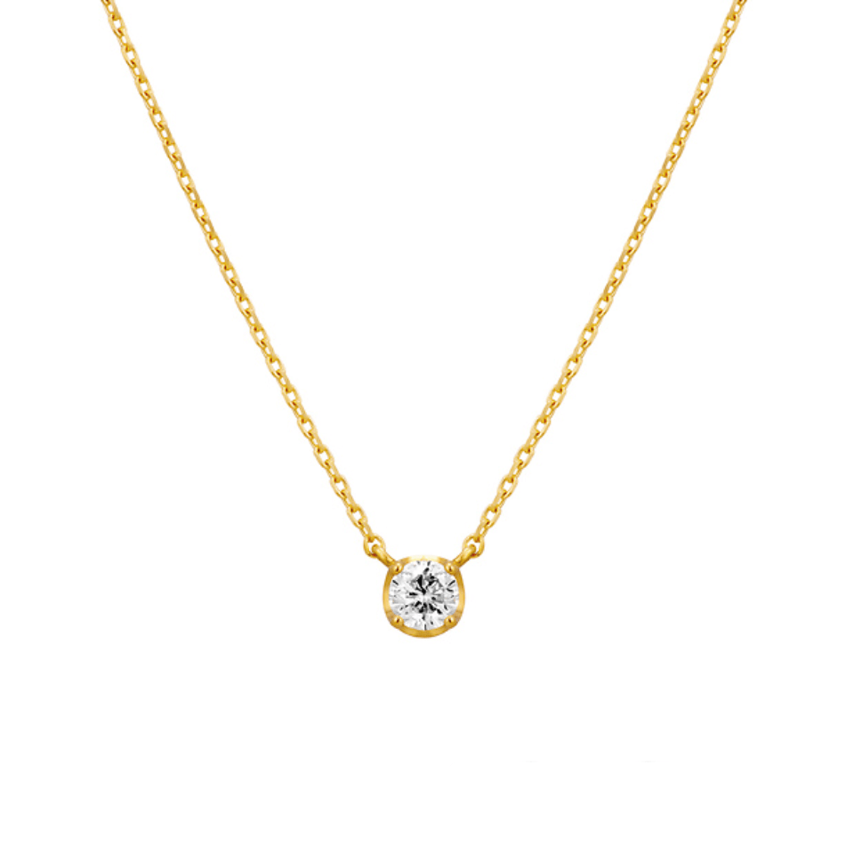 しっかり存在感がありつつも、女性らしく上品なのが一粒ダイヤモンドネックレス。小さな爪で留めることで、ダイヤモンドの輝きをより際立たせ、華やかで凛々しいルックスに。