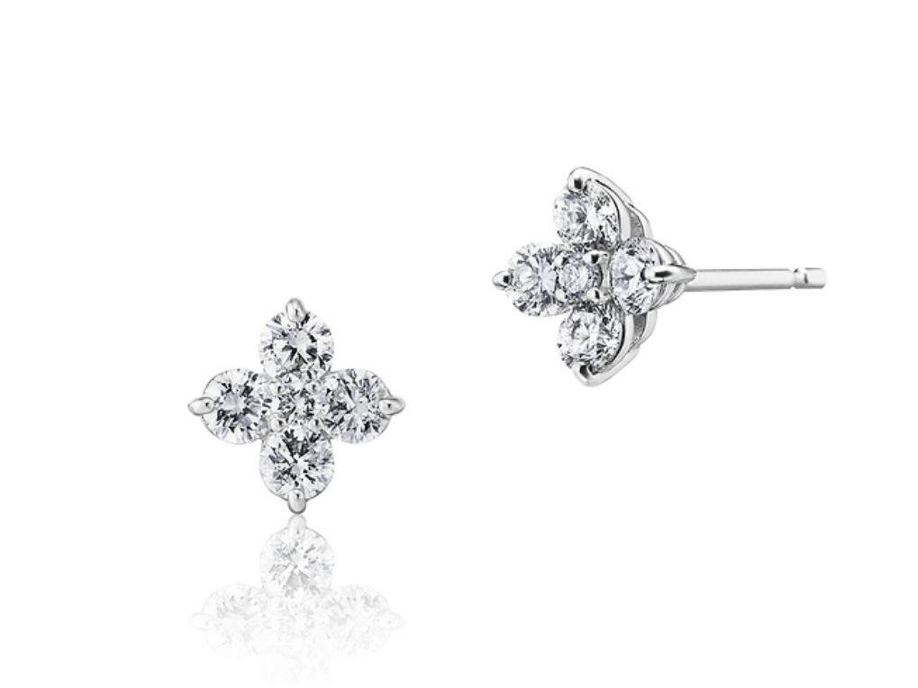 ダイヤモンドをお花のように寄せた、可愛らしさの中にエレガントが漂う上品さが、フェミニンさんとの相性バッチリ。女性らしい甘さのあるデザインは、耳元を華やかに彩ります。