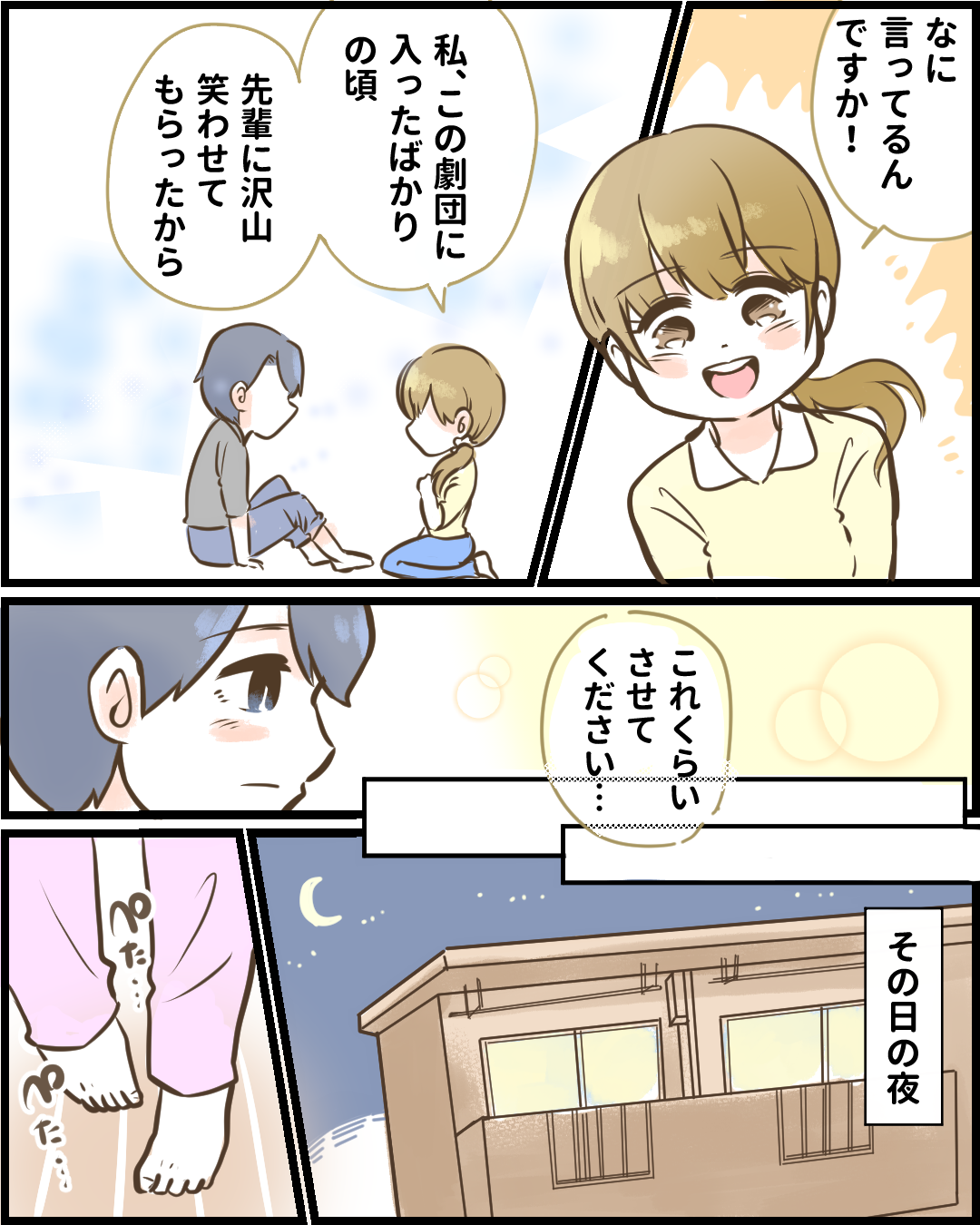 演劇が繋いだ恋 オリジナル漫画 2025年2月25日 目次 ゆき味さんの作品をもっと読む! ゆき味さんの作品一覧【Lovely漫画】 ゆき味さんの作品をおまとめしています! こちらのLovely漫画もおすすめ! 私を見つけてくれてありがとう【Lovely漫画】 学生の頃、携帯ショップで店員として接客してくれた彼と5年後に再会。同じ業界の同僚として一緒に働くようになり…©どんぐり/エピソード:匿名 一番近くにいた人【Lovely漫画】 当時の彼氏の友達だったヒカル先輩。SNSがキッカケでご飯に行ったり、連絡を取り合う仲になった。季節は過ぎ久しぶりに会う約束をしたら、ドキッとする事を言われて…。©はにぃ/エピソード:にんじん 好きな人が出来たことが無い彼を好きにさせた話【Lovely漫画】 私が好きになったバイト先の店長は、「好き」という気持ちが分からない人で…。でも絶対に振り向かせてみせる!©しのだちかこ/エピソード:j ライター Lovely編集部 編集部レポや最新情報など皆さんの「知りたい」をお届け!よろしくお願いします♡ Related article / 関連記事 オリジナル漫画 メンヘラ彼氏にサヨナラ【Lovely漫画】 ©みんみ 2022年3月29日 オリジナル漫画 年下イケメン彼氏に翻弄されるオンナの毎日#3【Lovely漫画】 ©みんみ 2022年3月29日 オリジナル漫画 2人暮らしのゆる家事日記~気まぐれ旦那の献立作りの巻き~後編【Lovely漫画】 ©みんみ 2022年3月29日 オリジナル漫画 年下イケメン彼氏に翻弄されるオンナの毎日#1【Lovely漫画】 ©みんみ「初めての○○の話 前編」 2022年3月29日 オリジナル漫画 年下イケメン彼氏に翻弄されるオンナの毎日#2【Lovely漫画】 ©みんみ「初めての○○の話 後編」 2022年3月29日 1 2 オリジナル漫画 よかったらシェアしてね! URLをコピーしました! URLをコピーしました! 全てのきっかけをくれた人【Lovely漫画】 毛穴を埋める化粧下地13選|デパコス~プチプラで目指せたまご肌!