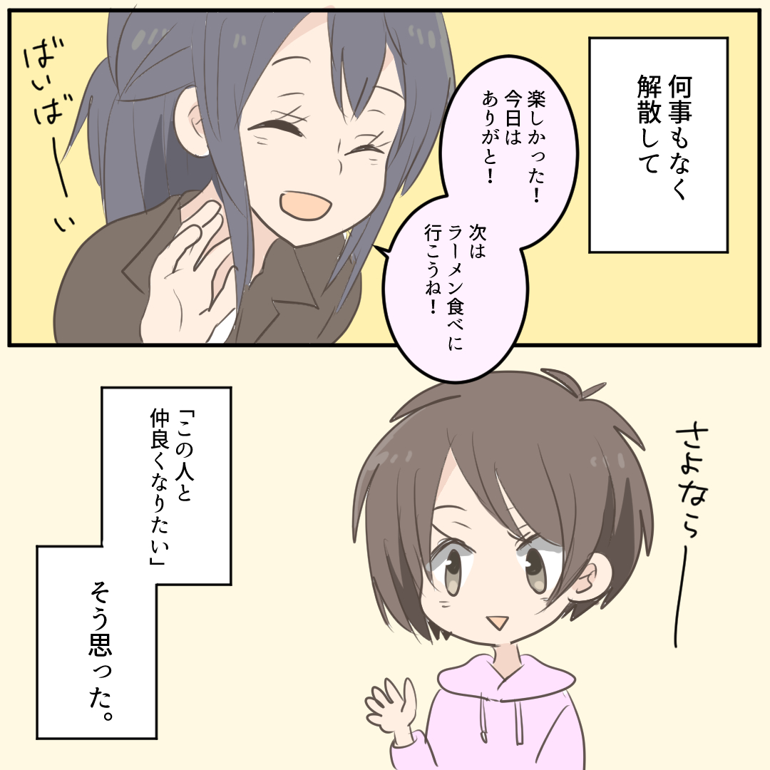 友達だと思ってた3【倉間漫画】 オリジナル漫画 2025年4月1日 目次 ▼続きはこちら 友達だと思ってた4【倉間漫画】 社会人になって、友達をつくろうとしてた時の話©倉間 こちらのLovely漫画もおすすめ 【新連載】さよなら親友 0(プロローグ)【magari漫画】 フォロワーさんの体験談です。※事実を元にしたフィクションになります。 ©magari ネッ友がホストになったので会いに行った話 1【山田ぽむち漫画】 ネッ友がホストになったので会いに行った話 ©山田ぽむち 私の太陽(前編)【Lovely漫画】 私を照らしてくれる太陽は、いつも側に居てくれる君だった。©おはぎ/エピソード:ひな ライター 倉間 旅行と酒を愛する会社員です!Instagram【@kurama__23】 Related article / 関連記事 オリジナル漫画 メンヘラ彼氏にサヨナラ【Lovely漫画】 ©みんみ 2022年3月29日 オリジナル漫画 年下イケメン彼氏に翻弄されるオンナの毎日#3【Lovely漫画】 ©みんみ 2022年3月29日 オリジナル漫画 2人暮らしのゆる家事日記~気まぐれ旦那の献立作りの巻き~後編【Lovely漫画】 ©みんみ 2022年3月29日 オリジナル漫画 年下イケメン彼氏に翻弄されるオンナの毎日#1【Lovely漫画】 ©みんみ「初めての○○の話 前編」 2022年3月29日 オリジナル漫画 年下イケメン彼氏に翻弄されるオンナの毎日#2【Lovely漫画】 ©みんみ「初めての○○の話 後編」 2022年3月29日 1 2 オリジナル漫画 よかったらシェアしてね! URLをコピーしました! URLをコピーしました! 電話占いウィルの占い師「兎咲理紗」は当たる?口コミや体験レポまとめ