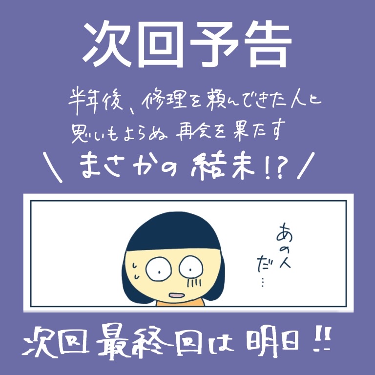 顔を足で踏むことに?!4【稲漫画】 オリジナル漫画 2025年4月1日 ▼前回のお話はこちら 顔を足で踏むことに?!3【稲漫画】 人助けをしたら何故こんな状況に…?©稲 稲さんの連載一覧はこちら 毎日更新!サラリーウーマン稲のエッセイ漫画 毎日更新!サラリーウーマン稲のエッセイ漫画 こちらのLovely漫画もおすすめ 愛を感じた朝【Lovely漫画】 ©kurumi/エピソード:わんわん 気遣いができる彼【Lovely漫画】 連絡先を交換したばかりの男性とデートすることになった私。緊張と不安で迎えたデート当日でしたが、彼の素敵な気遣いを目の当たりにして…。©しのだちかこ/エピソード:みずき 初恋の幼馴染みと恋の続き【Lovely漫画】 ©kurumi/エピソード:森っ子 いつも支えてくれる大切な人【Lovely漫画】 彼女持ちの彼に一目惚れ。彼女と別れてご飯に行けたのに…©ぴまを/エピソード:すなぎも ライター 稲 エッセイ漫画を描くサラリーウーマン!Instagram【@inasan_mainichi】 目次Related article / 関連記事 オリジナル漫画 メンヘラ彼氏にサヨナラ【Lovely漫画】 ©みんみ 2022年3月29日 オリジナル漫画 年下イケメン彼氏に翻弄されるオンナの毎日#3【Lovely漫画】 ©みんみ 2022年3月29日 オリジナル漫画 2人暮らしのゆる家事日記~気まぐれ旦那の献立作りの巻き~後編【Lovely漫画】 ©みんみ 2022年3月29日 オリジナル漫画 年下イケメン彼氏に翻弄されるオンナの毎日#1【Lovely漫画】 ©みんみ「初めての○○の話 前編」 2022年3月29日 オリジナル漫画 年下イケメン彼氏に翻弄されるオンナの毎日#2【Lovely漫画】 ©みんみ「初めての○○の話 後編」 2022年3月29日 オリジナル漫画 よかったらシェアしてね! URLをコピーしました! URLをコピーしました! 不幸アピールする後輩にウンザリ19【稲漫画】 不幸アピールする後輩にウンザリ22【稲漫画】