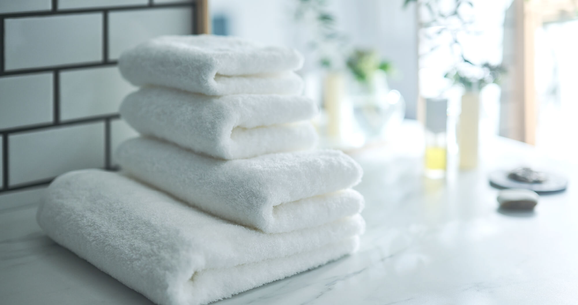 特殊撚糸工法「スーパーZERO」を使用したタオル。極細(40番手)のインド産最高級オーガニック綿糸に2000回転の撚りをかけ、さらにこの特殊撚糸工法「スーパーZERO」を施すことでより、柔らかな肌触りと軽さ、そして優れた吸水性・速乾性・耐久性を実現。