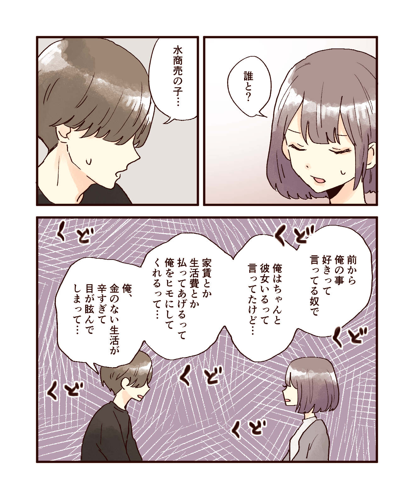 ヒモになった彼【Lovely漫画】 オリジナル漫画 2025年2月10日 目次 どんぐりさんの作品をもっと読む! どんぐりさんの作品一覧【Lovely漫画】 どんぐりさんの人気作をおまとめしています! こちらのLovely漫画もおすすめ! おみくじ第13番大吉【Lovely漫画】 今も大切にしている「13番」のおみくじは私の宝物♡©サクライ/エピソード:てんこ クールで口下手な彼氏が愛おしい!【Lovely漫画】 言葉で伝えあうのは遠距離恋愛や付き合いを長く続ける秘訣かも♡©倖/エピソード:さき 初恋は最長の片思い【Lovely漫画】 ©ぴまを/エピソード:七海 体育祭のご褒美【Lovely漫画】 片思い中の彼が、憂鬱な体育祭を楽しい行事に変えてくれました♡©おなか/エピソード:るるる ライター Lovely編集部 編集部レポや最新情報など皆さんの「知りたい」をお届け!よろしくお願いします♡ Related article / 関連記事 オリジナル漫画 メンヘラ彼氏にサヨナラ【Lovely漫画】 ©みんみ 2022年3月29日 オリジナル漫画 年下イケメン彼氏に翻弄されるオンナの毎日#3【Lovely漫画】 ©みんみ 2022年3月29日 オリジナル漫画 2人暮らしのゆる家事日記~気まぐれ旦那の献立作りの巻き~後編【Lovely漫画】 ©みんみ 2022年3月29日 オリジナル漫画 年下イケメン彼氏に翻弄されるオンナの毎日#1【Lovely漫画】 ©みんみ「初めての○○の話 前編」 2022年3月29日 オリジナル漫画 年下イケメン彼氏に翻弄されるオンナの毎日#2【Lovely漫画】 ©みんみ「初めての○○の話 後編」 2022年3月29日 1 2 オリジナル漫画 よかったらシェアしてね! URLをコピーしました! URLをコピーしました! 質問の答えは…?【Lovely漫画】 結婚式におすすめの曲・BGM!洋楽まとめ