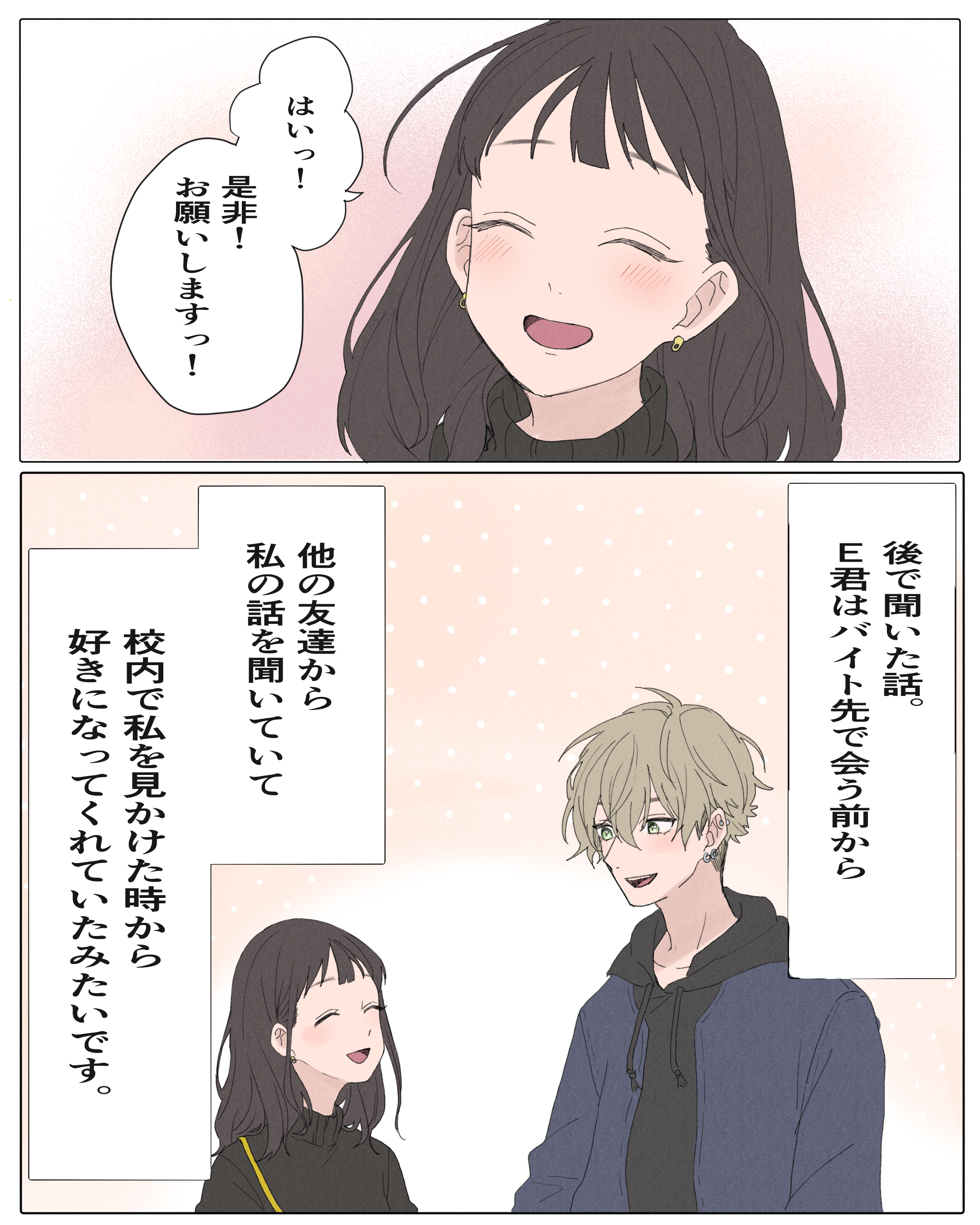 社内異動で出会ったのが、1つ下の後輩だった彼。仕事のミスでやけ酒をしているところで偶然出くわしたのをきっかけに…自分から告白!?©匿名/エピソード:なな