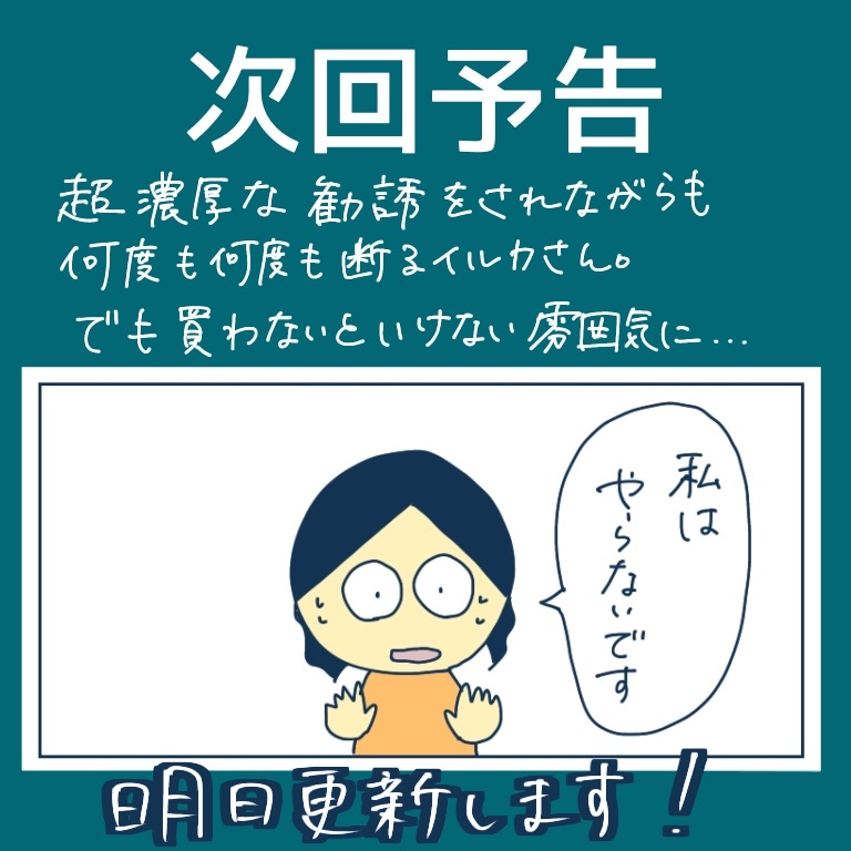 アプリで知り合った人に高額商品を買わされた?話4【稲漫画】 オリジナル漫画 2025年4月1日 ▼前回のお話はこちら アプリで知り合った人に高額商品を買わされた?話3【稲漫画】 マッチングアプリで出会った人はまさかの詐欺師…?©稲 ▼続きはこちら アプリで知り合った人に高額商品を買わされた?話5【稲漫画】 マッチングアプリで出会った人はまさかの詐欺師…?©稲 こちらのLovely漫画もおすすめ ツンデレ…?【Lovely漫画】 ©ホシノモナカ/エピソード:た きみはほんとにしょうがないんだよ、【Lovely漫画】 これが本当の「ツンデレ」なのでは…©イオさんオリジナルストーリー♡ 30周年【Lovely漫画】 自分の両親は理想の仲良し夫婦!いつか私も…♡©おはぎ/エピソード:かるあみるく ライター 稲 エッセイ漫画を描くサラリーウーマン!Instagram【@inasan_mainichi】 目次Related article / 関連記事 オリジナル漫画 メンヘラ彼氏にサヨナラ【Lovely漫画】 ©みんみ 2022年3月29日 オリジナル漫画 年下イケメン彼氏に翻弄されるオンナの毎日#3【Lovely漫画】 ©みんみ 2022年3月29日 オリジナル漫画 2人暮らしのゆる家事日記~気まぐれ旦那の献立作りの巻き~後編【Lovely漫画】 ©みんみ 2022年3月29日 オリジナル漫画 年下イケメン彼氏に翻弄されるオンナの毎日#1【Lovely漫画】 ©みんみ「初めての○○の話 前編」 2022年3月29日 オリジナル漫画 年下イケメン彼氏に翻弄されるオンナの毎日#2【Lovely漫画】 ©みんみ「初めての○○の話 後編」 2022年3月29日 オリジナル漫画 よかったらシェアしてね! URLをコピーしました! URLをコピーしました! 不幸アピールする後輩にウンザリ19【稲漫画】 不幸アピールする後輩にウンザリ22【稲漫画】