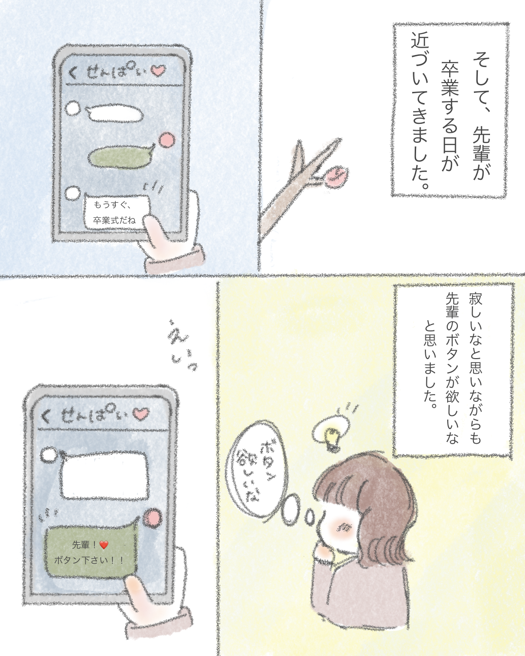 まさかの袖ボタン【Lovely漫画】 オリジナル漫画 2024年10月4日 目次 kowariさんの作品をもっと読む! kowariさんの作品一覧【Lovely漫画】 kowariさんの作品をおまとめしています! こちらのLovely漫画もおすすめ 2年越しの恋【Lovely漫画】 偶然に出会った彼が気になるも、連絡先を交換したのはそれから1年以上も後…©ぴまを/エピソード:こち 恋愛より部活動を優先したあのとき【Lovely漫画】 スポーツ推薦で入学し、恋愛より部活動を優先した高校時代の思い出©倖/エピソード:ナナ 心臓が持たないことは秘密…【Lovely漫画】 いつも塩対応の彼の急な甘々に心臓が持ちません…♡©倖/エピソード:ゆったん いつか主役になれたらいいなあ【Lovely漫画】 今まで好きになる人には彼女がいた私。高校に進学して仲良くなった同級生が気になるけれど今までの経験が邪魔をして…©はにぃ/エピソード:163 ライター Lovely編集部 編集部レポや最新情報など皆さんの「知りたい」をお届け!よろしくお願いします♡ Related article / 関連記事 オリジナル漫画 メンヘラ彼氏にサヨナラ【Lovely漫画】 ©みんみ 2022年3月29日 オリジナル漫画 年下イケメン彼氏に翻弄されるオンナの毎日#3【Lovely漫画】 ©みんみ 2022年3月29日 オリジナル漫画 2人暮らしのゆる家事日記~気まぐれ旦那の献立作りの巻き~後編【Lovely漫画】 ©みんみ 2022年3月29日 オリジナル漫画 年下イケメン彼氏に翻弄されるオンナの毎日#1【Lovely漫画】 ©みんみ「初めての○○の話 前編」 2022年3月29日 オリジナル漫画 年下イケメン彼氏に翻弄されるオンナの毎日#2【Lovely漫画】 ©みんみ「初めての○○の話 後編」 2022年3月29日 1 2 オリジナル漫画 よかったらシェアしてね! URLをコピーしました! URLをコピーしました! 彼のジャージ【Lovely漫画】 40代の髪型は前髪あり・なしどっちが可愛い?【ショート〜ロング】