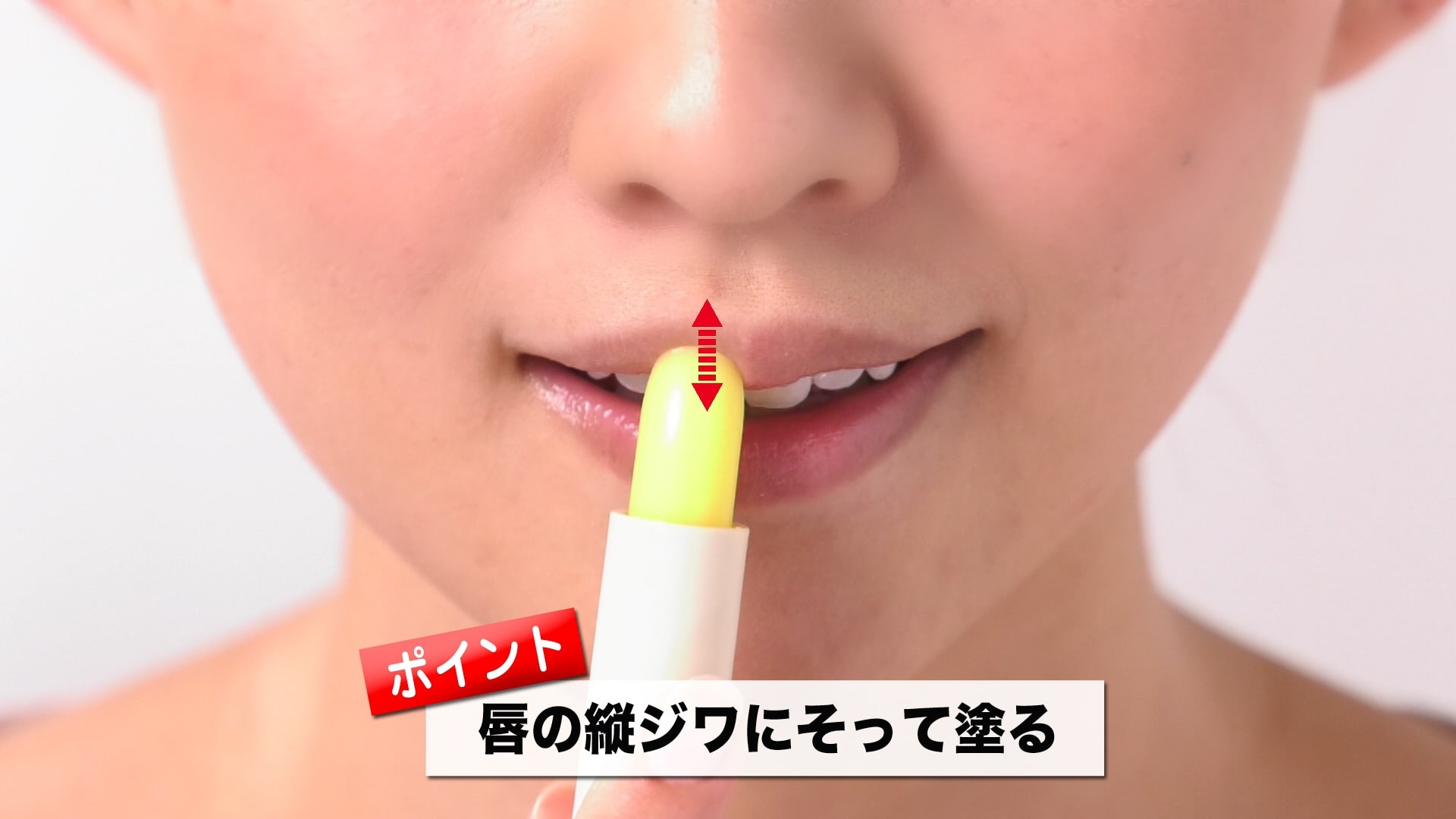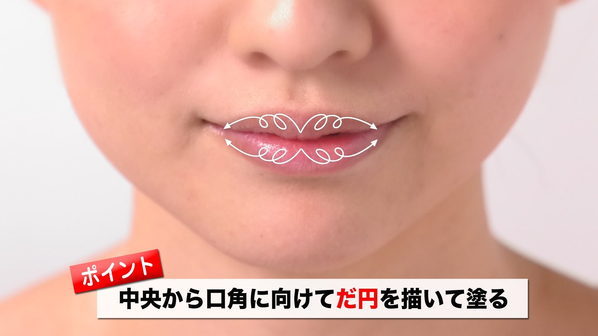 唇の縦ジワにそって中央から口角に向けて塗ります。