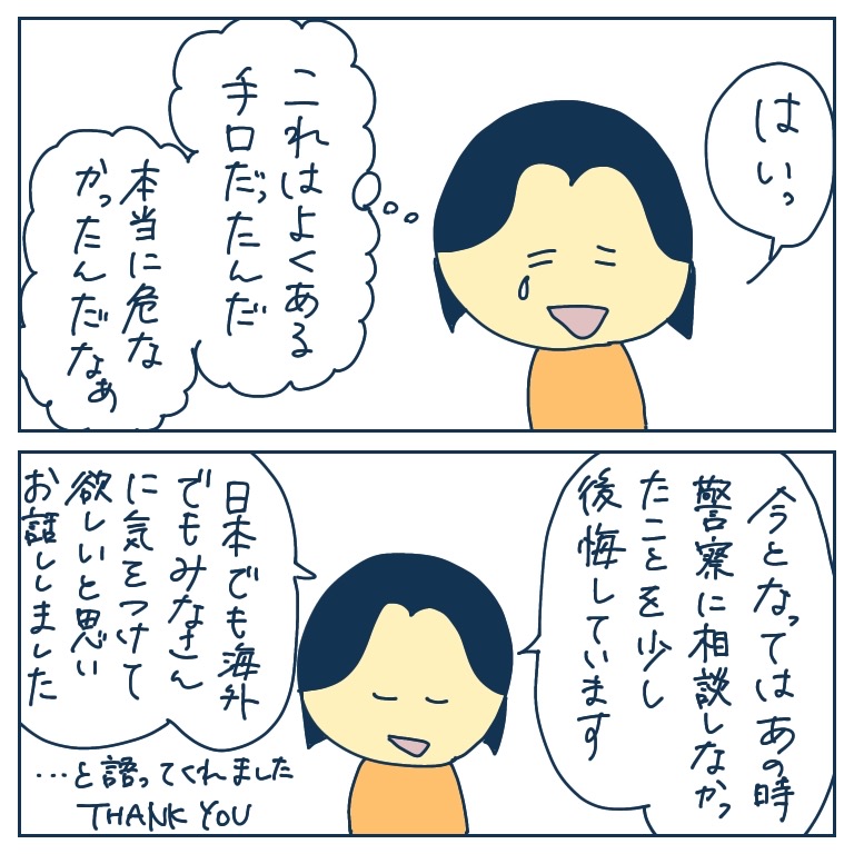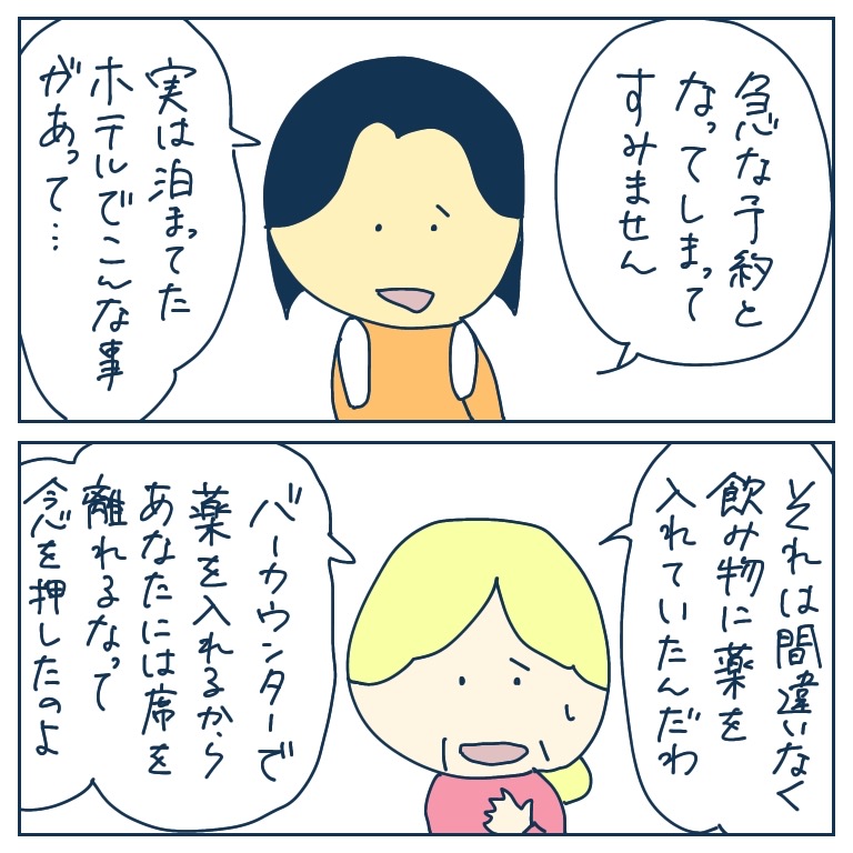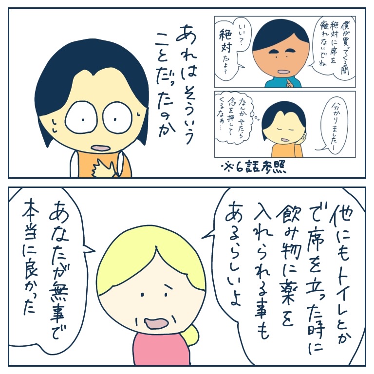 私の飲み物に何を入れたの?15【稲漫画】 オリジナル漫画 2025年4月1日 ▼前回のお話はこちら 私の飲み物に何を入れたの?14【稲漫画】 フォロワーさんが海外旅行に行った時の話©稲 稲さんの連載一覧 毎日更新!サラリーウーマン稲のエッセイ漫画 毎日更新!サラリーウーマン稲のエッセイ漫画 こちらのLovely漫画もおすすめ 彼氏のことが好きかわからない…。電話占い「みん電占い」の診断結果は?[PR] 最近、彼氏との時間が楽しくない…好きじゃないのかな?電話占いの『みんなの電話占い』は8万件以上の口コミや占い師の先生との実際の会話まで見れる体験談も豊富だから安心です。さらに、Lovelyサイトから登録した方限定で、初回3000円オフクーポンをプレゼント! 気遣いができる彼【Lovely漫画】 連絡先を交換したばかりの男性とデートすることになった私。緊張と不安で迎えたデート当日でしたが、彼の素敵な気遣いを目の当たりにして…。©しのだちかこ/エピソード:みずき 優しい嘘【Lovely漫画】 二人の始まりは映画デート。後日、この日の彼の「優しい嘘」を知った私は…。©なぁ/エピソード:タピオカ ライター 稲 エッセイ漫画を描くサラリーウーマン!Instagram【@inasan_mainichi】 目次Related article / 関連記事 オリジナル漫画 メンヘラ彼氏にサヨナラ【Lovely漫画】 ©みんみ 2022年3月29日 オリジナル漫画 年下イケメン彼氏に翻弄されるオンナの毎日#3【Lovely漫画】 ©みんみ 2022年3月29日 オリジナル漫画 2人暮らしのゆる家事日記~気まぐれ旦那の献立作りの巻き~後編【Lovely漫画】 ©みんみ 2022年3月29日 オリジナル漫画 年下イケメン彼氏に翻弄されるオンナの毎日#1【Lovely漫画】 ©みんみ「初めての○○の話 前編」 2022年3月29日 オリジナル漫画 年下イケメン彼氏に翻弄されるオンナの毎日#2【Lovely漫画】 ©みんみ「初めての○○の話 後編」 2022年3月29日 オリジナル漫画 よかったらシェアしてね! URLをコピーしました! URLをコピーしました! 不幸アピールする後輩にウンザリ19【稲漫画】 不幸アピールする後輩にウンザリ22【稲漫画】