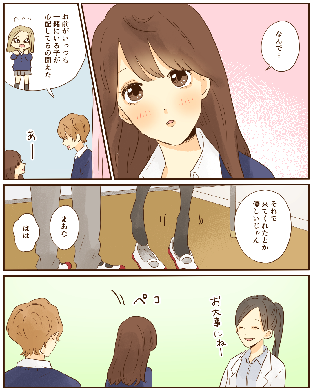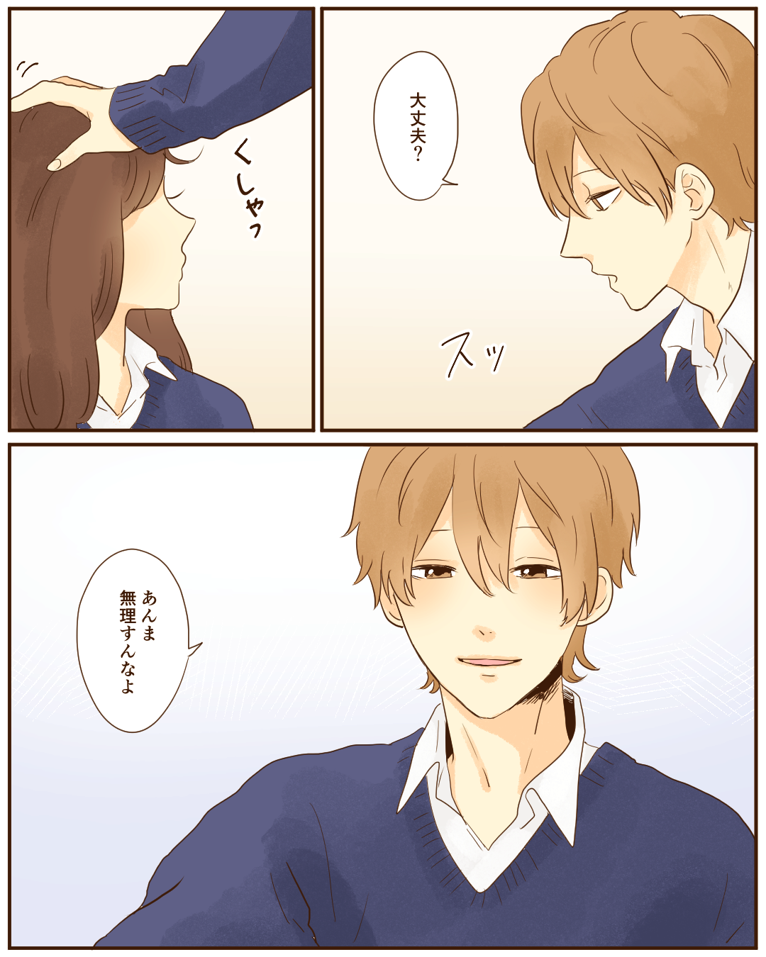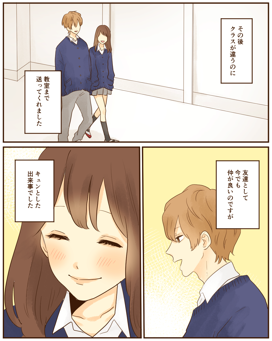 キュンとした青春の出来事【Lovely漫画】 オリジナル漫画 2024年11月13日 目次 どんぐりさんの作品をもっと読む! どんぐりさんの作品一覧【Lovely漫画】 どんぐりさんの人気作をおまとめしています! こちらのLovely漫画もおすすめ! ただの男友達…?【Lovely漫画】 私はカラオケが大好き!友人の健太もカラオケが好きで、今日も一緒にカラオケに行くことに。いつも通りのカラオケだったはずなのに…©ゆき味/エピソード:mana ポケットからキュンです♡【Lovely漫画】 遠距離の彼が精一杯気持ちを伝えてくれました♡©kurumi/エピソード:ちっち 優しさが染みた一日【Lovely漫画】 熱を出して起き上がれないほどしんどかったある日、突然彼氏が家にやってきた。何やら大きな買い物袋を持ってきて、「ゴハン作るよ」と!普段料理はしないのに、私のために…。©kowari/エピソード:えり 先生、それは好きになっちゃいます!【Lovely漫画】 ドジで優しい先生に毎日胸キュンしているお話…♡©みほ/エピソード:あーちゃん ライター Lovely編集部 編集部レポや最新情報など皆さんの「知りたい」をお届け!よろしくお願いします♡ Related article / 関連記事 オリジナル漫画 メンヘラ彼氏にサヨナラ【Lovely漫画】 ©みんみ 2022年3月29日 オリジナル漫画 年下イケメン彼氏に翻弄されるオンナの毎日#3【Lovely漫画】 ©みんみ 2022年3月29日 オリジナル漫画 2人暮らしのゆる家事日記~気まぐれ旦那の献立作りの巻き~後編【Lovely漫画】 ©みんみ 2022年3月29日 オリジナル漫画 年下イケメン彼氏に翻弄されるオンナの毎日#1【Lovely漫画】 ©みんみ「初めての○○の話 前編」 2022年3月29日 オリジナル漫画 年下イケメン彼氏に翻弄されるオンナの毎日#2【Lovely漫画】 ©みんみ「初めての○○の話 後編」 2022年3月29日 1 2 オリジナル漫画 よかったらシェアしてね! URLをコピーしました! URLをコピーしました! 先輩と腕相撲で距離が縮んだ話【Lovely漫画】 恋コスメの効果は?リップ・香水・チークなどのおすすめまとめ!