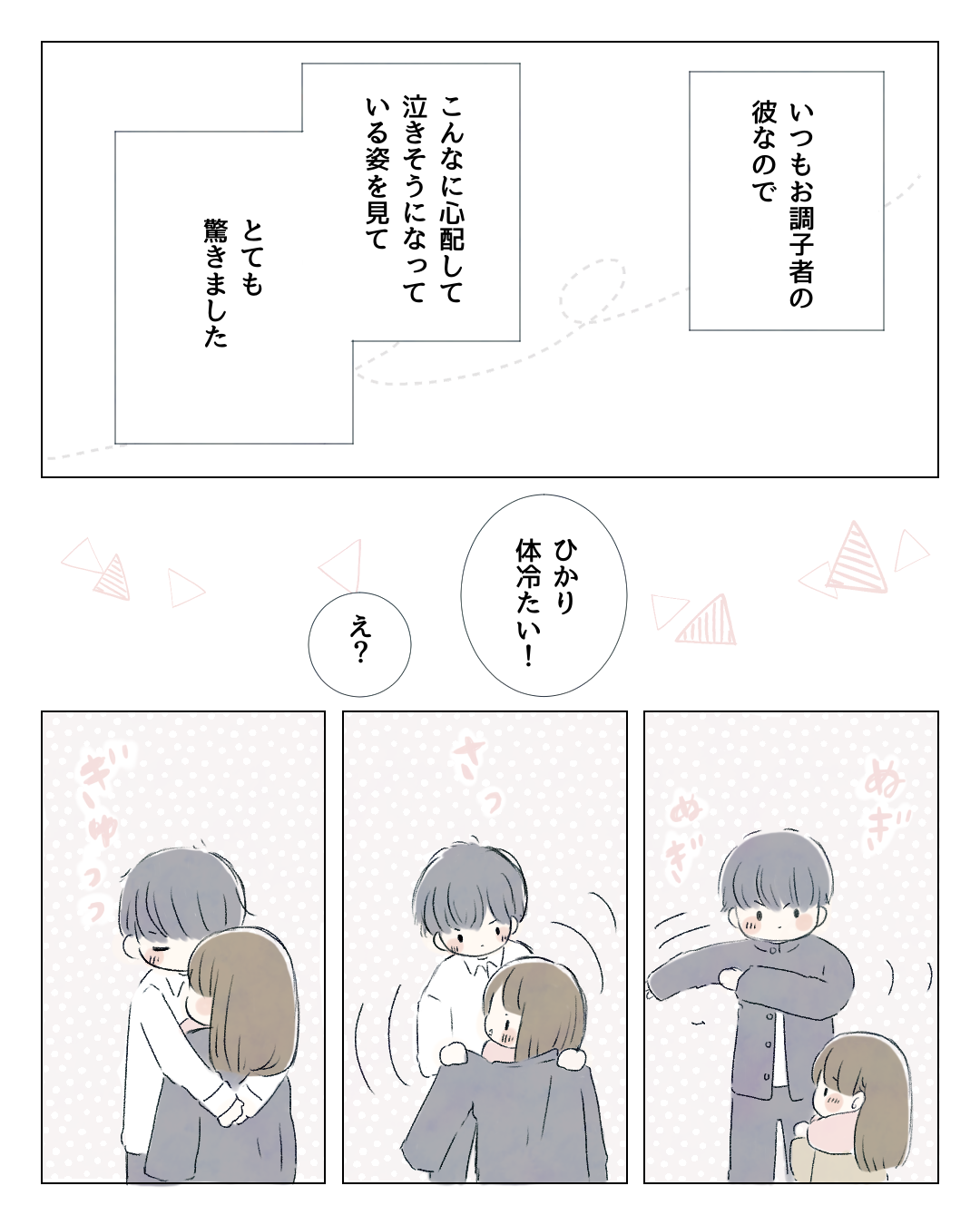 倒れた次の日の彼【Lovely漫画】 オリジナル漫画 2025年2月21日 目次 なぁさんの作品をもっと読む! なぁさんの作品一覧【Lovely漫画】 なぁさんの人気作をおまとめしています! こちらのLovely漫画もおすすめ! 学年一位の彼【Lovely漫画】 学年一位の彼と学年最下位の私。そんな私たちの話。©おひつじぐも/エピソード:15一会 思いがけないサプライズ【Lovely漫画】 東京と熊本で4歳年上の彼と遠距離恋愛中の私。5か月間会えない寂しさに少し負けそうになっていました。©れも/エピソード:みさき 生理と彼氏【Lovely漫画】 彼氏と楽しみにしていたショッピングデート中、突然の痛みに加え意識がもうろうとしてきて…©kurumi/エピソード:つなまよ 彼に愛されてます 1【まつり漫画】 ©まつり ライター Lovely編集部 編集部レポや最新情報など皆さんの「知りたい」をお届け!よろしくお願いします♡ Related article / 関連記事 オリジナル漫画 卒業式 全校生徒の前でサプライズ①【Lovely漫画】 ©りん/エピソード:こなつ 2022年3月29日 オリジナル漫画 SNSでガチ恋しちゃいました。【Lovely漫画】 仕方なく別れた年上彼氏を吹っ切ろうと始めたSNSで…©しおり/エピソード:匿名 2023年12月12日 オリジナル漫画 ざんねんな恋辞典【Lovely漫画】 ©beth 2022年3月29日 オリジナル漫画 キュンとする恋の思い出【Lovely漫画】 ©beth/エピソード:ルンルン 2022年3月29日 オリジナル漫画 忘れられない恋【Lovely漫画】 中学・高校と一緒だった彼に6年間片思いしていた私。告白できないまま卒業の日がやってきて…。©beth/エピソード:すーちゃん 2025年2月6日 オリジナル漫画 顔に出にくいカップルの話【Lovely漫画】 azusaさんオリジナル、読み切り短編漫画の連載スタート!(不定期更新) 2022年3月29日 オリジナル漫画 里中さんと山内くんの両片想い【Lovely漫画】 告白しようと思うもいつも失敗してしまう里中さんと、勇気を出せずにいる山内くんの、初々しい短編連載スタート!©azusa 2022年3月29日 オリジナル漫画 君がいる世界は【Lovely漫画】 付き合ってからずっと言葉で伝えてくれる彼。不満をぶつけて自己嫌悪に陥ったときだって…。©sui/エピソード:まる 2023年12月12日 オリジナル漫画 2年越しの恋【Lovely漫画】 偶然に出会った彼が気になるも、連絡先を交換したのはそれから1年以上も後…©ぴまを/エピソード:こち 2023年12月12日 オリジナル漫画 彼はパパラッチ【Lovely漫画】 カメラ好きの私たちが撮影に行った日、お互いの写真を見てみると…©しのだちかこ/エピソード:まなみ 2023年12月12日 オリジナル漫画 コロナウイルスで会うのを自粛しているカップルの話【Lovely漫画】 ©azusa/エピソード:do!!! 2022年3月29日 オリジナル漫画 寝坊が彼との接点を生むなんて【Lovely漫画】 話せなかった好きな人が声をかけてくれたのは、「変な髪」のおかげ。©なぁ/エピソード:はむ 2025年1月14日 オリジナル漫画 やっぱりギャップに弱いんです【Lovely漫画】 普段は「THE男」という感じの彼の照れた顔にキュン♡©しおり/エピソード:ことり 2022年3月29日 遠距離 婚約ミサンガ【Lovely漫画】 彼が沖縄のおみやげをたくさん買ってきてくれた。その中にはミサンガも。すると彼が突然驚きの言葉を!?©しのだちかこ/エピソー… 2024年11月25日 オリジナル漫画 大好きな人の声が聞きたい。【Lovely漫画】 ©azusa/エピソード:バボちゃん 2022年3月29日 オリジナル漫画 小学2年生のプロポーズ【Lovely漫画】 お気に入りのシャーペンのお返しはなんと!?©kurumi/エピソード:みずき 2023年12月12日 オリジナル漫画 いつも支えてくれる大切な人【Lovely漫画】 彼女持ちの彼に一目惚れ。彼女と別れてご飯に行けたのに…©ぴまを/エピソード:すなぎも 2023年12月12日 オリジナル漫画 キュンとしたはなし【Lovely漫画】 ©ホシノモナカ/エピソード:N 2023年12月12日 オリジナル漫画 ツンデレ…?【Lovely漫画】 ©ホシノモナカ/エピソード:た 2022年3月29日 オリジナル漫画 最高のドライブ【Lovely漫画】 運転してくれる彼の一言に感動していたら…©しおり/エピソード:かっぱ 2024年10月10日 1 2 オリジナル漫画 よかったらシェアしてね! URLをコピーしました! URLをコピーしました! 我が家を監視する隣人12【稲漫画】 演劇が繋いだ恋