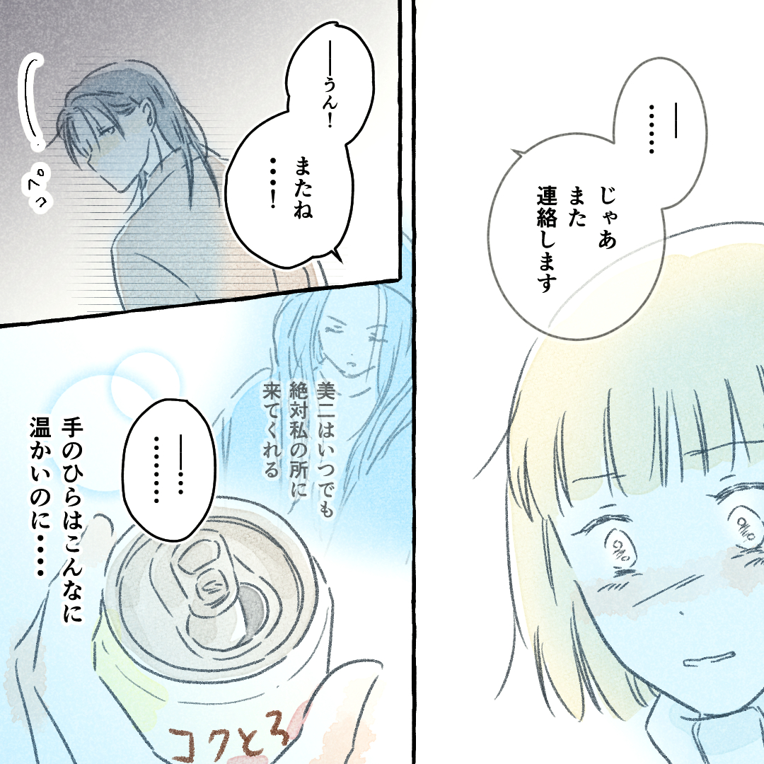 コンビニのきみ16【真白ばに漫画】 オリジナル漫画 2025年4月1日 目次 次を読む コンビニのきみ17【真白ばに漫画】 長髪のとてもきれいなコンビニの彼。思い切って声をかけてから…©真白ばに こちらのLovely漫画もおすすめ! 別れて1か月の元彼から連絡が来た!復縁占いなら「みん電占い」[PR] 彼氏と別れて1か月ー…元彼が忘れられないリサは夢にまで元彼を見る始末…。「これって復縁の前兆では?!」。別れて1か月経ったけど、男性の心理ってどう変化しているの?元彼の気持ちが気になるリサは「みんなの電話占い」で占ってもらい、晴れて復縁に成功! 気付いて!【Lovely漫画】 とても可愛くてスポーツも勉強もできて…でも超鈍感な私の友達。その子に私はある質問をした…©おはぎ/エピソード:LJK 運命の人…?【Lovely漫画】 モラハラでDVの元彼と別れ、友達の勧めで登録したマッチングアプリ。メッセージのやり取りだけで満足していた私だったけど、ある日…©どんぐり/エピソード:椿 ライター 真白ばに 短編~連載まで様々な恋物語を大人気更新中!Instagram【vani.co303】 Related article / 関連記事 オリジナル漫画 メンヘラ彼氏にサヨナラ【Lovely漫画】 ©みんみ 2022年3月29日 オリジナル漫画 年下イケメン彼氏に翻弄されるオンナの毎日#3【Lovely漫画】 ©みんみ 2022年3月29日 オリジナル漫画 2人暮らしのゆる家事日記~気まぐれ旦那の献立作りの巻き~後編【Lovely漫画】 ©みんみ 2022年3月29日 オリジナル漫画 年下イケメン彼氏に翻弄されるオンナの毎日#1【Lovely漫画】 ©みんみ「初めての○○の話 前編」 2022年3月29日 オリジナル漫画 年下イケメン彼氏に翻弄されるオンナの毎日#2【Lovely漫画】 ©みんみ「初めての○○の話 後編」 2022年3月29日 1 2 3 オリジナル漫画 よかったらシェアしてね! URLをコピーしました! URLをコピーしました! 電話占いウィルの占い師「兎咲理紗」は当たる?口コミや体験レポまとめ