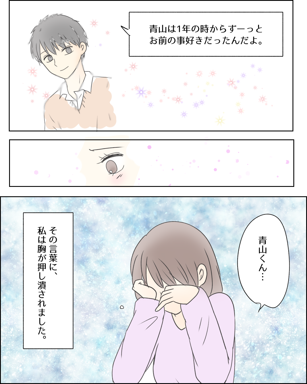 両片想い今度は必ず。【Lovely漫画】 オリジナル漫画 2024年11月29日 目次 kurumiさんの作品をもっと読む! kurumiさんの作品一覧【Lovely漫画】 kurumiさんの人気作をおまとめしています! こちらのLovely漫画もおすすめ! もう一度、君と【Lovely漫画】 中学2年生の時、同じクラスになった彼と仲が良かった私。当時はお互いに付き合っている人がいて…©kurumi/エピソード:るる 長くて一途な恋愛物語【Lovely漫画】 中高一貫校に通う私。高校一年生で初めて同じクラスになった彼が実は秀才と知ってから気になる存在に…©はにぃ/エピソード:ハニーライオン 忘れられない初恋【Lovely漫画】 小学生で初めて好きになった人ー…ずっと忘れられない初恋の人。その想いを伝えるのに15年かかった©sui/エピソード:maa 20歳の前に私へ【Lovely漫画】 好きな人、過去の自分、全部にありがとう…。©てこ/エピソード:すう ライター Lovely編集部 編集部レポや最新情報など皆さんの「知りたい」をお届け!よろしくお願いします♡ Related article / 関連記事 オリジナル漫画 メンヘラ彼氏にサヨナラ【Lovely漫画】 ©みんみ 2022年3月29日 オリジナル漫画 年下イケメン彼氏に翻弄されるオンナの毎日#3【Lovely漫画】 ©みんみ 2022年3月29日 オリジナル漫画 2人暮らしのゆる家事日記~気まぐれ旦那の献立作りの巻き~後編【Lovely漫画】 ©みんみ 2022年3月29日 オリジナル漫画 年下イケメン彼氏に翻弄されるオンナの毎日#1【Lovely漫画】 ©みんみ「初めての○○の話 前編」 2022年3月29日 オリジナル漫画 年下イケメン彼氏に翻弄されるオンナの毎日#2【Lovely漫画】 ©みんみ「初めての○○の話 後編」 2022年3月29日 1 2 オリジナル漫画 よかったらシェアしてね! URLをコピーしました! URLをコピーしました! 彼にものすごく愛されてます【Lovely漫画】 バツイチの女性との結婚はアリ?ナシ?男性の本音を調査!