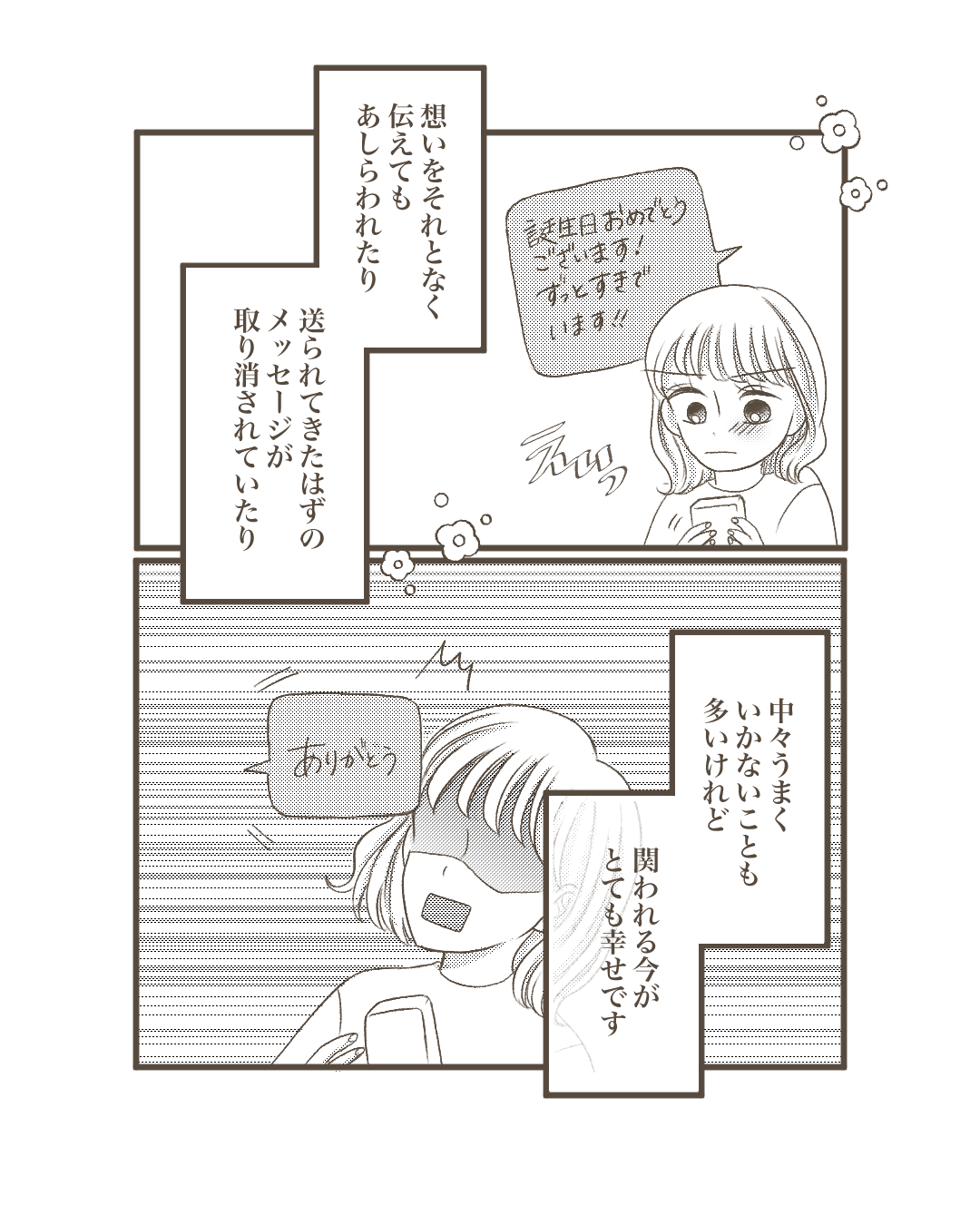 3年の片思い【Lovely漫画】 オリジナル漫画 2022年3月29日 目次 こちらのLovely漫画もおすすめ! 初恋は実らない?【Lovely漫画】 小学2年生で初めての告白。でも、まだその時は「恋」がわからなくて…©おはぎ/エピソード:えんぺらーーー 私の初恋と10年【Lovely漫画】 小学校から片思いをした彼に思い切って告白!無事に恋人になれたけれど…©ナナ/エピソード:みや ぶつけられないこの想い【Lovely漫画】 人気者の彼のことが気になる私。そんな彼が私のことを「かわいい」と言ってるのを知り、前よりも意識してしまい…©ナナ/エピソード:yama 恋する季節に ー春ー 1【beth(ベス)漫画】 SNSで大人気beth(ベス)さんが送る胸キュン間違いなしの創作ストーリー!呼春ちゃん編♡ ©beth(ベス) ライター Lovely編集部 編集部レポや最新情報など皆さんの「知りたい」をお届け!よろしくお願いします♡ Related article / 関連記事 オリジナル漫画 メンヘラ彼氏にサヨナラ【Lovely漫画】 ©みんみ 2022年3月29日 オリジナル漫画 年下イケメン彼氏に翻弄されるオンナの毎日#3【Lovely漫画】 ©みんみ 2022年3月29日 オリジナル漫画 2人暮らしのゆる家事日記~気まぐれ旦那の献立作りの巻き~後編【Lovely漫画】 ©みんみ 2022年3月29日 オリジナル漫画 年下イケメン彼氏に翻弄されるオンナの毎日#1【Lovely漫画】 ©みんみ「初めての○○の話 前編」 2022年3月29日 オリジナル漫画 年下イケメン彼氏に翻弄されるオンナの毎日#2【Lovely漫画】 ©みんみ「初めての○○の話 後編」 2022年3月29日 1 2 3 4 オリジナル漫画 よかったらシェアしてね! URLをコピーしました! URLをコピーしました! 【夢占い】彼女に浮気された夢の意味13選|もしかして予知夢?心理状態も解説 | plush 恋愛相談はどこで?相談所・掲示板・アプリでする?男友達にする?