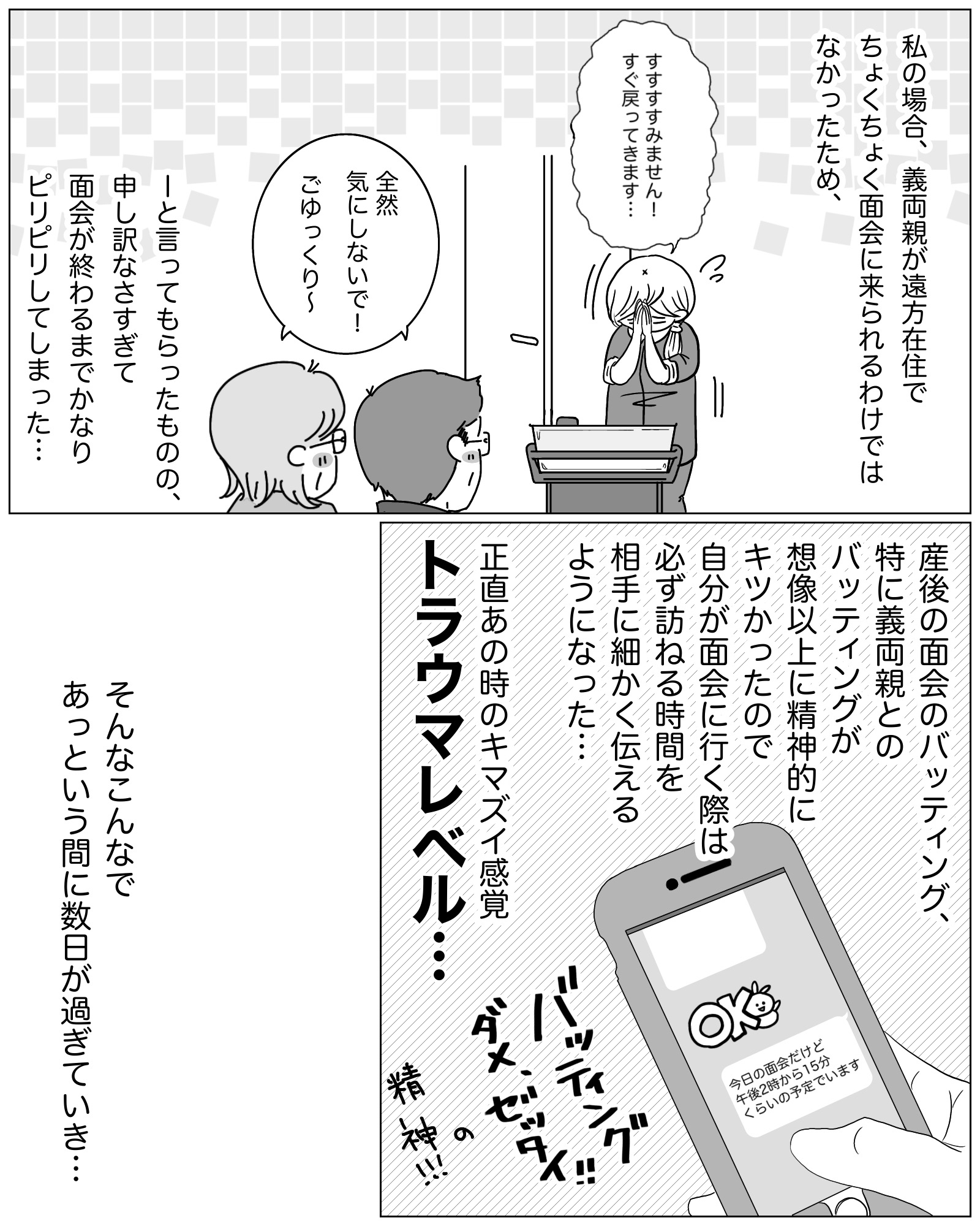 かままの(第一子)育児記録 4【かまま漫画】 オリジナル漫画 2025年4月1日 ▼前回のお話はこちら かままの(第一子)育児記録 3【かまま漫画】 おなかに娘がやってきたときのはなし ©かまま 続きはこちら かままの(第一子)育児記録 5【かまま漫画】 おなかに娘がやってきたときのはなし ©かまま かままさんの連載一覧 娘と息子の子育てに奮闘中の主婦漫画 娘と息子の子育てに奮闘中の主婦漫画©かまま こちらのLovely漫画もおすすめ 別れて1か月の元彼から連絡が来た!復縁占いなら「みん電占い」[PR] 彼氏と別れて1か月ー…元彼が忘れられないリサは夢にまで元彼を見る始末…。「これって復縁の前兆では?!」。別れて1か月経ったけど、男性の心理ってどう変化しているの?元彼の気持ちが気になるリサは「みんなの電話占い」で占ってもらい、晴れて復縁に成功! ホワイトデーにもらったプレゼント【Lovely漫画】 今までのホワイトデーで一番嬉しいプレゼントでした♡©おはぎ/エピソード:シエル 今日はどんな夜になるかな?【Lovely漫画】 反応が可愛くて寝ている彼氏にいたずら♡そのことを話してみると、実は私もいたずらされていた!でもその反応は彼氏のとは正反対で…©倖/エピソード:あちゃん ライター かまま 2013年生まれの娘と2015年生まれの息子の子育てに奮闘中の主婦。絵を描くのが趣味。Instagram【@kamama36】 目次Related article / 関連記事 オリジナル漫画 メンヘラ彼氏にサヨナラ【Lovely漫画】 ©みんみ 2022年3月29日 オリジナル漫画 年下イケメン彼氏に翻弄されるオンナの毎日#3【Lovely漫画】 ©みんみ 2022年3月29日 オリジナル漫画 2人暮らしのゆる家事日記~気まぐれ旦那の献立作りの巻き~後編【Lovely漫画】 ©みんみ 2022年3月29日 オリジナル漫画 年下イケメン彼氏に翻弄されるオンナの毎日#1【Lovely漫画】 ©みんみ「初めての○○の話 前編」 2022年3月29日 オリジナル漫画 年下イケメン彼氏に翻弄されるオンナの毎日#2【Lovely漫画】 ©みんみ「初めての○○の話 後編」 2022年3月29日 オリジナル漫画 よかったらシェアしてね! URLをコピーしました! URLをコピーしました! 電話占いウィルの占い師「兎咲理紗」は当たる?口コミや体験レポまとめ