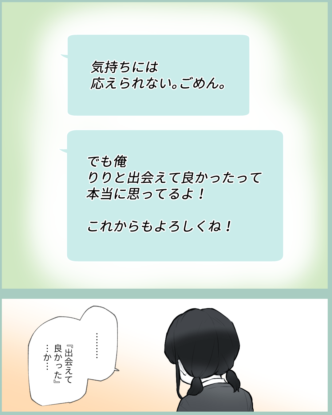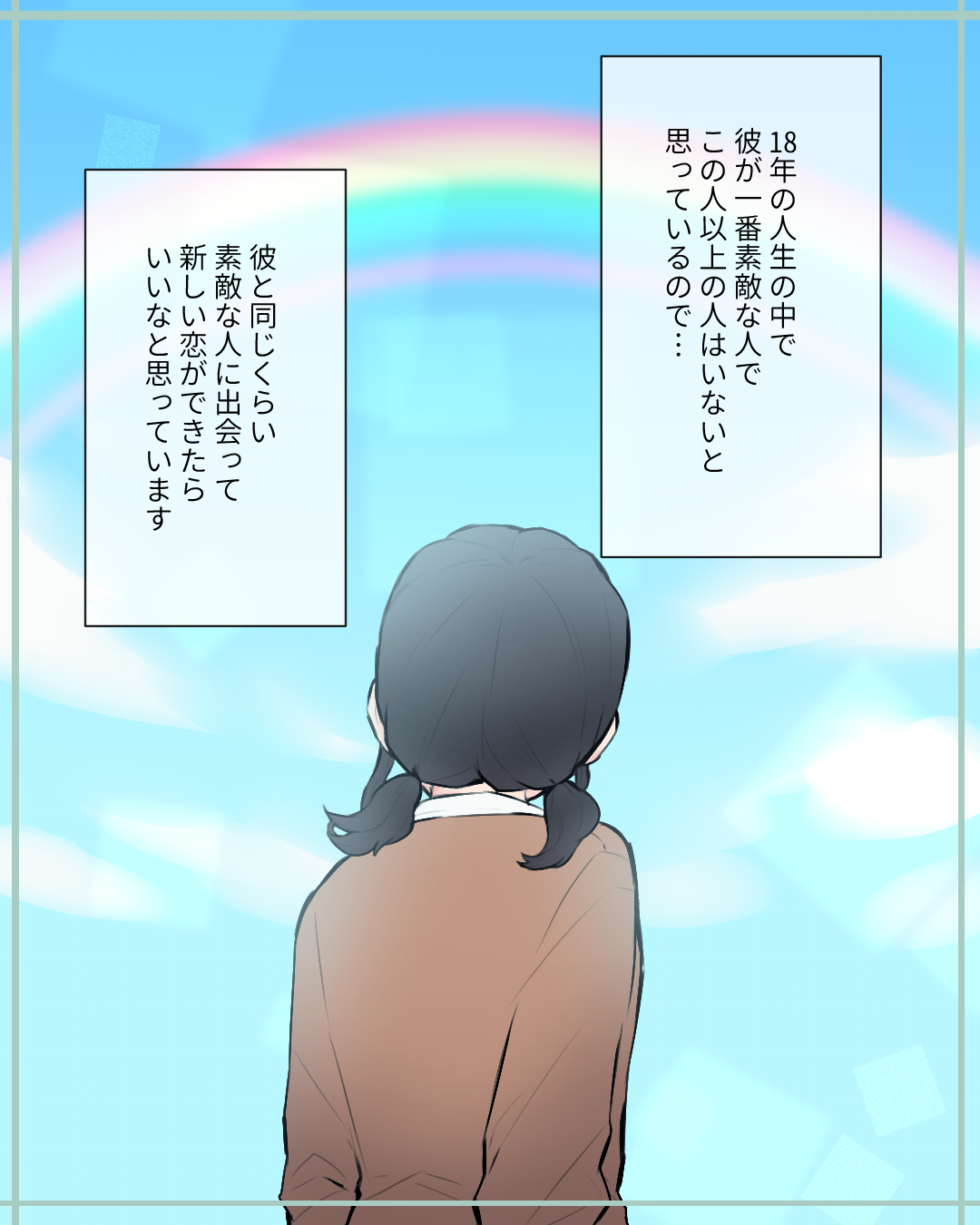 私の青春は君がすべて【Lovely漫画】 オリジナル漫画 2025年1月8日 目次 倖さんに作品をもっと読む! 倖さんの作品一覧【Lovely漫画】 倖さんの人気作をおまとめしています! こちらのLovely漫画もおすすめ! 「かわいい」から「かっこいい」に変わった日【Lovely漫画】 部活の後輩と付き合っている私。普段はかわいい彼なのですがある日のデートの帰りに…©倖/エピソード:かな 今もずっとあなたを思ってます【Lovely漫画】 高校三年の試験で会った試験監督の新任の先生。この日から先生と仲良くする機会が増えた私は、次第に先生に惹かれていき…©倖/エピソード:りり 先生の車【Lovely漫画】 中学1年の頃のできた好きな人は顧問の先生。まわりにはバレないように先生を想っていたある日…©あんころもち/エピソード:さとう 先輩に恋してた5年間【Lovely漫画】 新しく入ったバイト先の3つ年上の先輩に一目惚れした高校1年生の私。想いを伝えることが出来ないまま、先輩は就職活動に専念するためバイトを辞めることに。そんな中、再び先輩に会えるチャンスが訪れて…©みほ/エピソード:匿名 ライター Lovely編集部 編集部レポや最新情報など皆さんの「知りたい」をお届け!よろしくお願いします♡ Related article / 関連記事 オリジナル漫画 メンヘラ彼氏にサヨナラ【Lovely漫画】 ©みんみ 2022年3月29日 オリジナル漫画 年下イケメン彼氏に翻弄されるオンナの毎日#3【Lovely漫画】 ©みんみ 2022年3月29日 オリジナル漫画 2人暮らしのゆる家事日記~気まぐれ旦那の献立作りの巻き~後編【Lovely漫画】 ©みんみ 2022年3月29日 オリジナル漫画 年下イケメン彼氏に翻弄されるオンナの毎日#1【Lovely漫画】 ©みんみ「初めての○○の話 前編」 2022年3月29日 オリジナル漫画 年下イケメン彼氏に翻弄されるオンナの毎日#2【Lovely漫画】 ©みんみ「初めての○○の話 後編」 2022年3月29日 1 2 3 オリジナル漫画 よかったらシェアしてね! URLをコピーしました! URLをコピーしました! 大好きな彼と復縁した話【Lovely漫画】 ウクライナ人の性格の特徴!女性・男性別に解説します