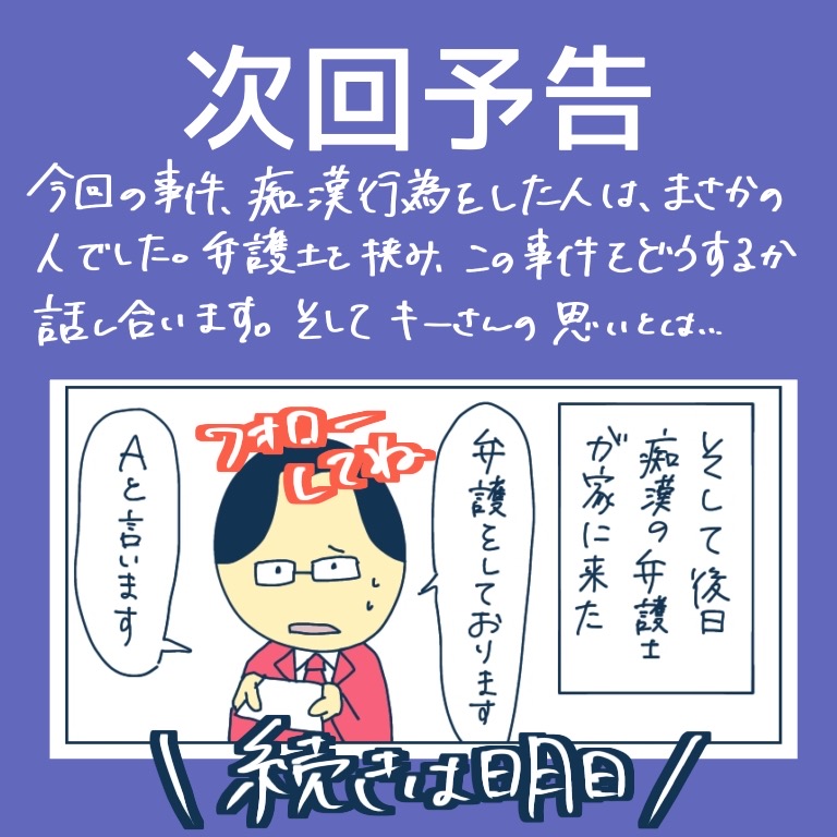 恐怖の痴漢からの脱出!?5【稲漫画】 オリジナル漫画 2022年10月3日 ▼前回のお話はこちら 恐怖の痴漢からの脱出!?4【稲漫画】 帰宅ラッシュで大混雑の電車に乗っていたフォロワーさんの恐怖体験©稲 次を読む 恐怖の痴漢からの脱出!?6【稲漫画】 帰宅ラッシュで大混雑の電車に乗っていたフォロワーさんの恐怖体験©稲 稲さんの連載一覧はこちら 毎日更新!サラリーウーマン稲のエッセイ漫画 毎日更新!サラリーウーマン稲のエッセイ漫画 こちらのLovely漫画もおすすめ 6年越しの彼の想い【Lovely漫画】 クラスメイトの彼から突然の連絡。誕生日プレゼントをくれた彼とはその後…©カンザキミナミ/エピソード:なる ずっと君を想う【Lovely漫画】 別のクラスの気になる女の子。ずっと彼女のことを想っている自分は…©おはぎ/エピソード:原田だっ 既婚者男性が職場で好きな女性にとる態度って?不倫の相談なら「みん電占い」[PR] 好きな人が既婚者で、恋愛の相談が誰にもできない…、既婚男性が職場で好きな女性にとる態度や気持ちが知りたい、そんな方には「みんなの電話占い」がおすすめ!8万件以上の口コミや占い師の先生との実際の会話まで見れる体験談も豊富で安心。さらに、Lovelyサイトから登録した方限定で、初回3000円オフクーポンをプレゼント! ライター 稲 エッセイ漫画を描くサラリーウーマン!Instagram【@inasan_mainichi】 目次Related article / 関連記事 オリジナル漫画 メンヘラ彼氏にサヨナラ【Lovely漫画】 ©みんみ 2022年3月29日 オリジナル漫画 年下イケメン彼氏に翻弄されるオンナの毎日#3【Lovely漫画】 ©みんみ 2022年3月29日 オリジナル漫画 2人暮らしのゆる家事日記~気まぐれ旦那の献立作りの巻き~後編【Lovely漫画】 ©みんみ 2022年3月29日 オリジナル漫画 年下イケメン彼氏に翻弄されるオンナの毎日#1【Lovely漫画】 ©みんみ「初めての○○の話 前編」 2022年3月29日 オリジナル漫画 年下イケメン彼氏に翻弄されるオンナの毎日#2【Lovely漫画】 ©みんみ「初めての○○の話 後編」 2022年3月29日 オリジナル漫画 よかったらシェアしてね! URLをコピーしました! URLをコピーしました! 束縛男の恐怖2【Lovely漫画】 あなたは本当に私の知り合い?2【稲漫画】