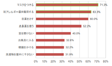効果を実感した対策はマスク着用と抗アレルギー薬の服用