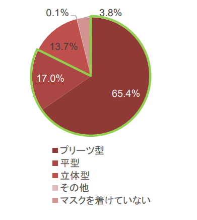 コロナ禍ではじまったマスク着用の効果を調べるため、使用しているマスクの形状を聞きました。その結果、最も多かったのは「プリーツ型」で7割、続いて「平方」が2割でした。また、マスクの種類に関わらず、7割がマスク着用で花粉症の症状が緩和されたと答えました。