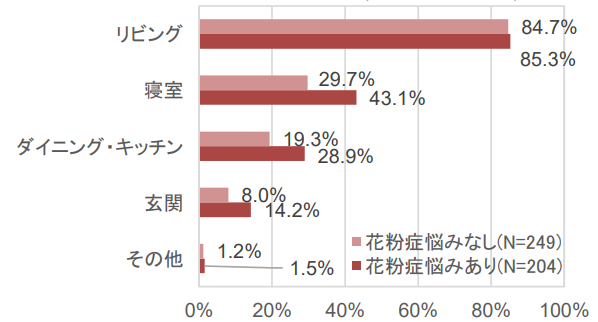 空気清浄機の設置場所は、「リビング」が最も多く、反対に最も少ないのが「玄関」でした。